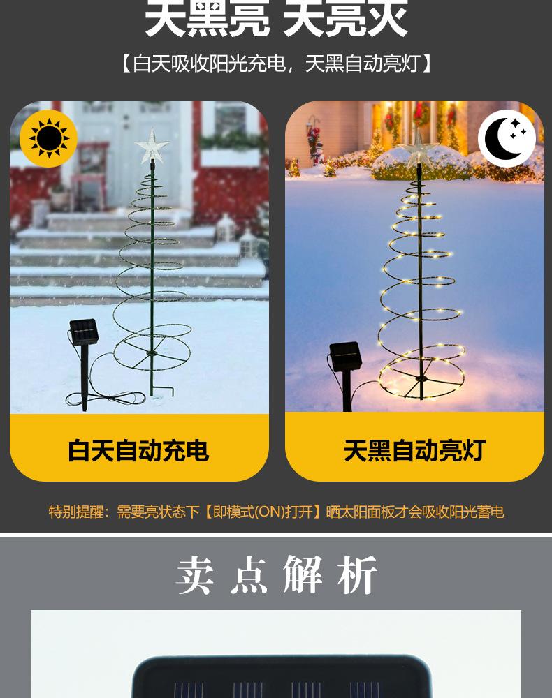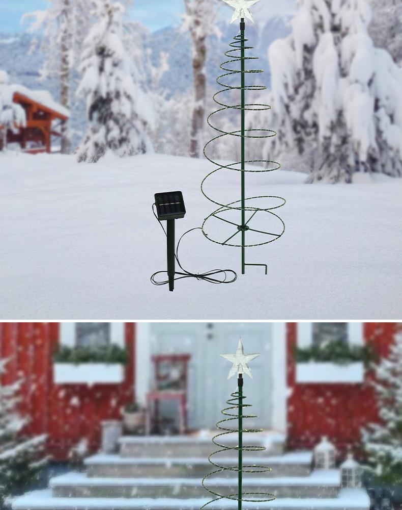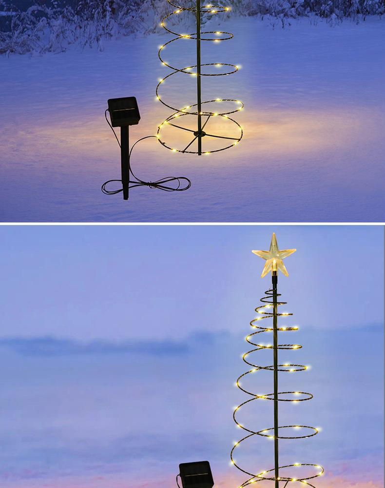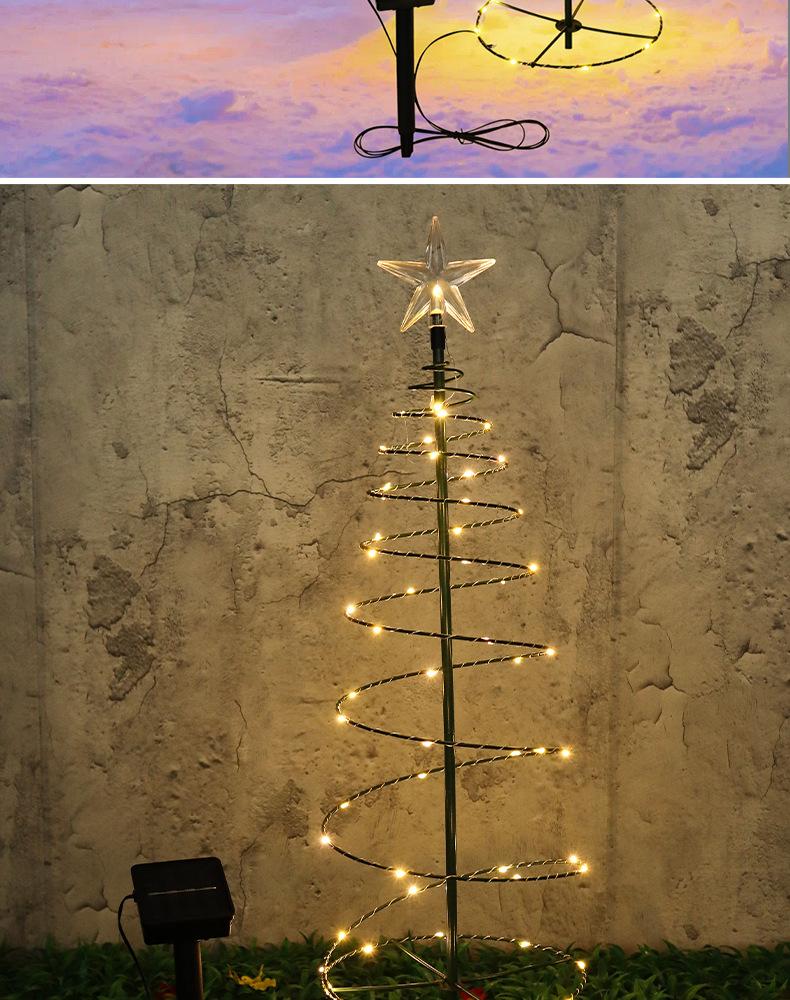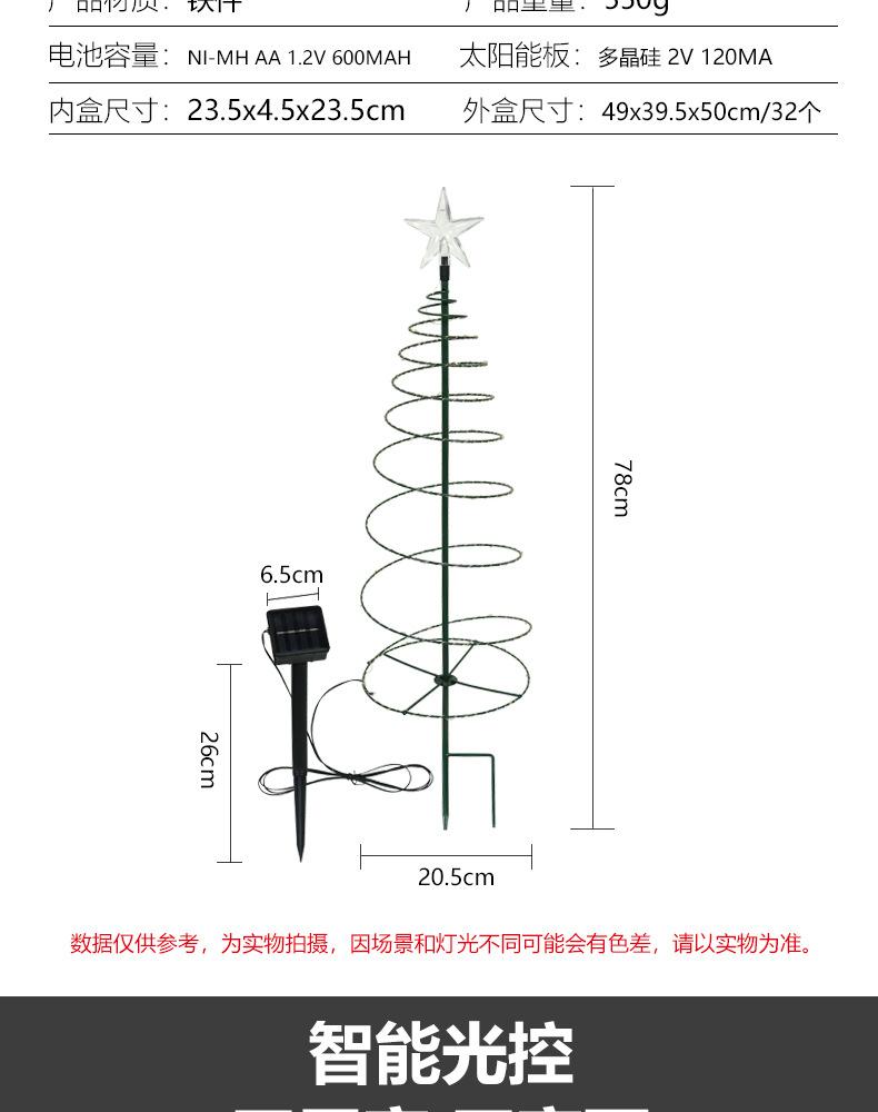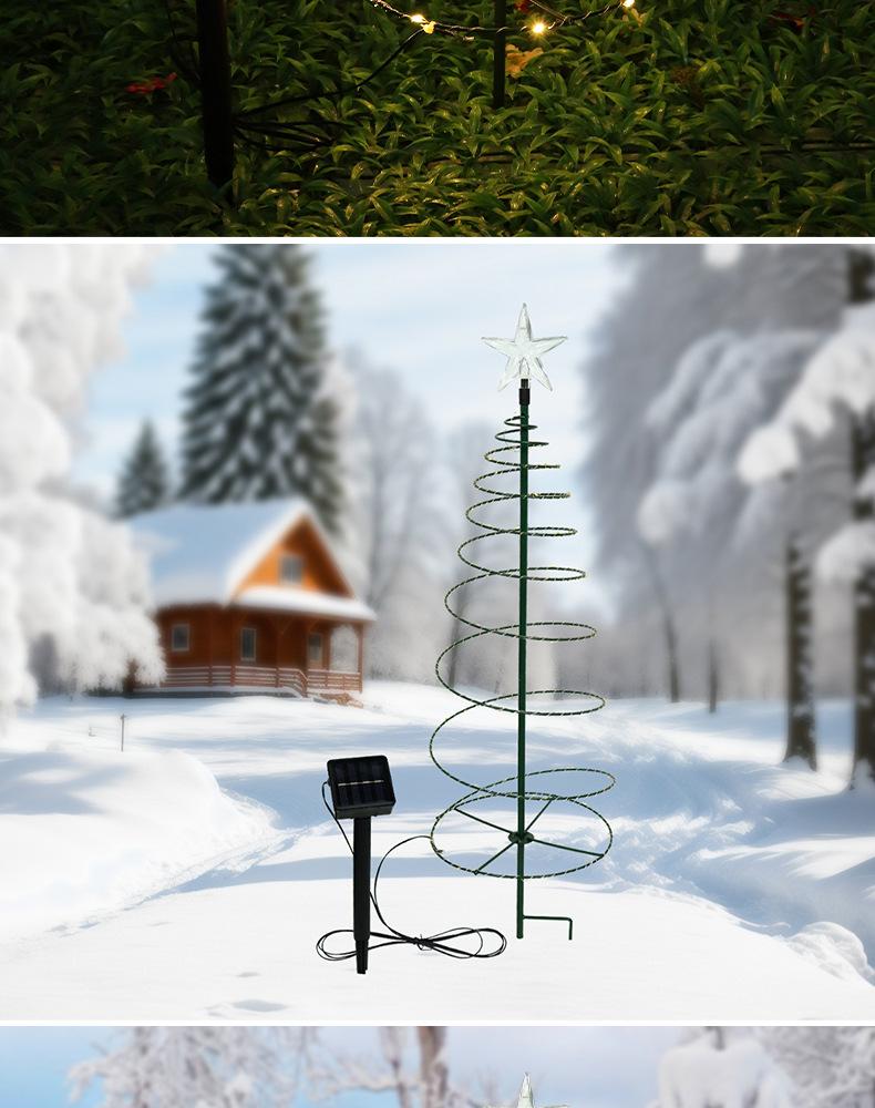 Árbol de Navidad solar transfronterizo con 8 patrones, lámpara de pie navideña para jardín, patio, decoración paisajística, hierro, color blanco cálido