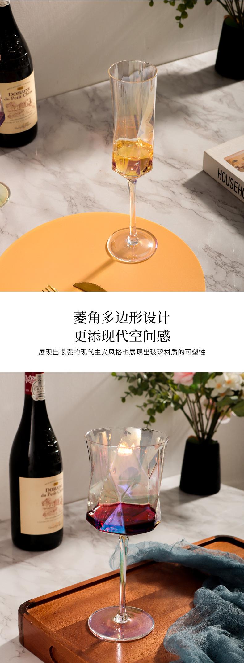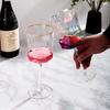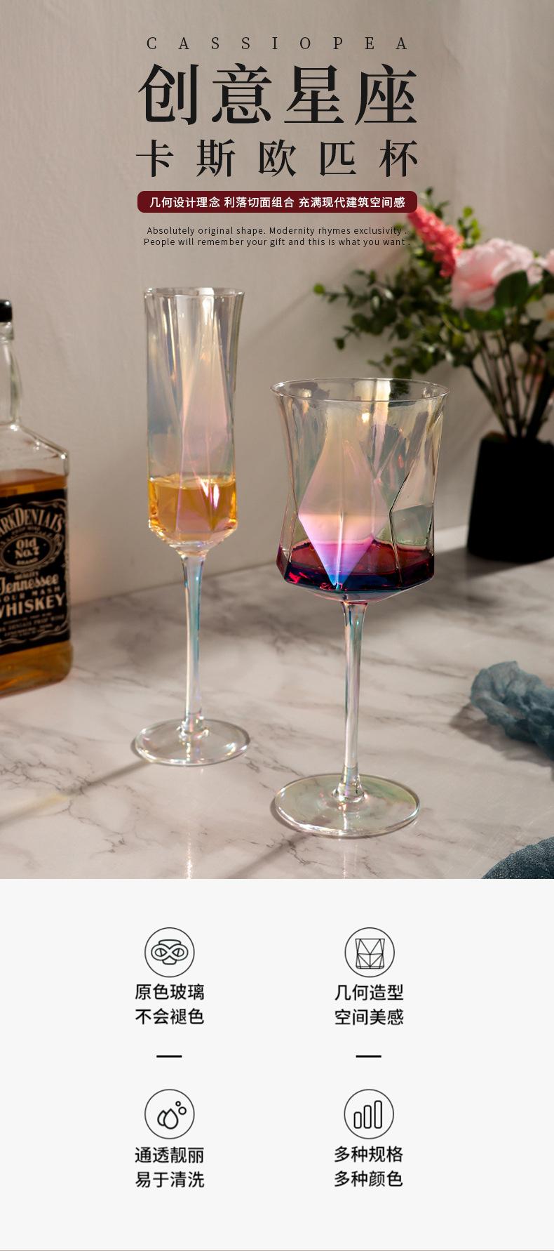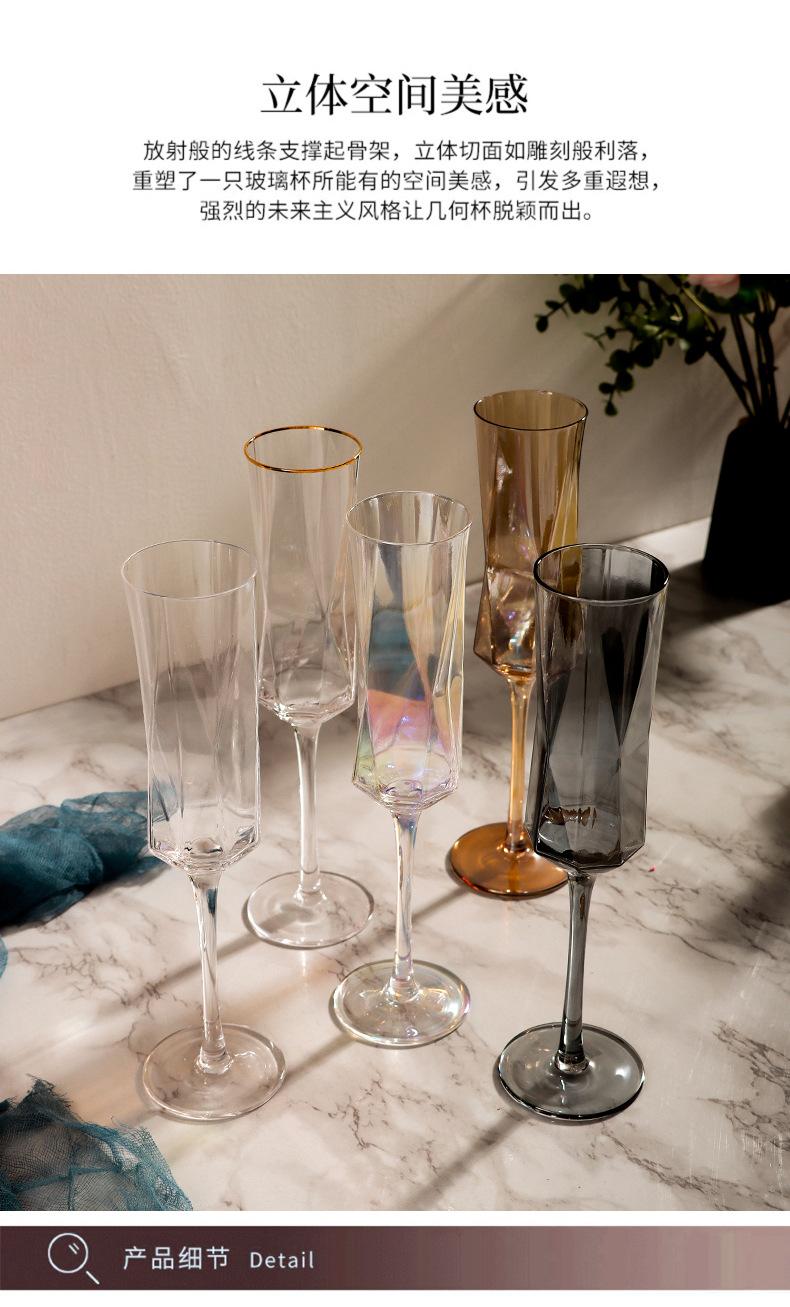 Transparent geometric champagne glass, Gold-painted geometric champagne glass, Colorful geometric champagne gl...