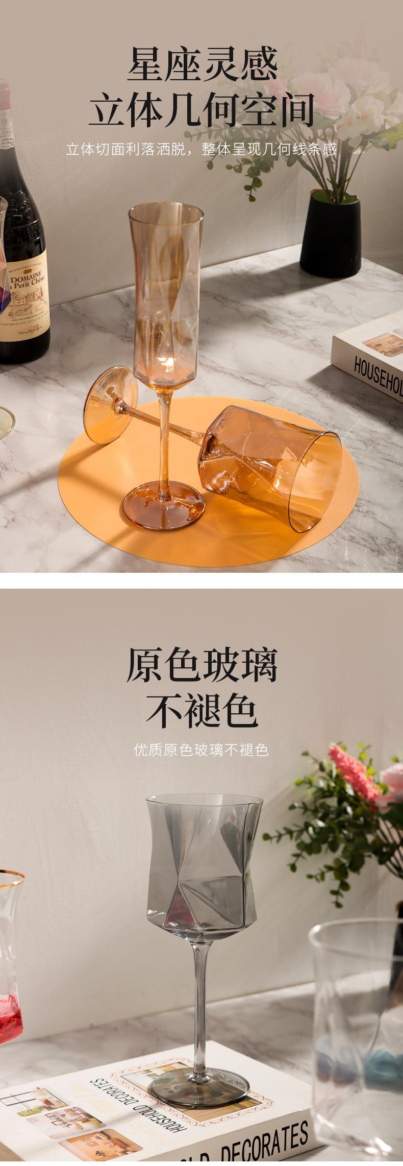 Copa geométrica para vino tinto copa de estilo europeo copa para champán para el hogar copa de vino de vidrio colorido ámbar gris ahumado