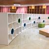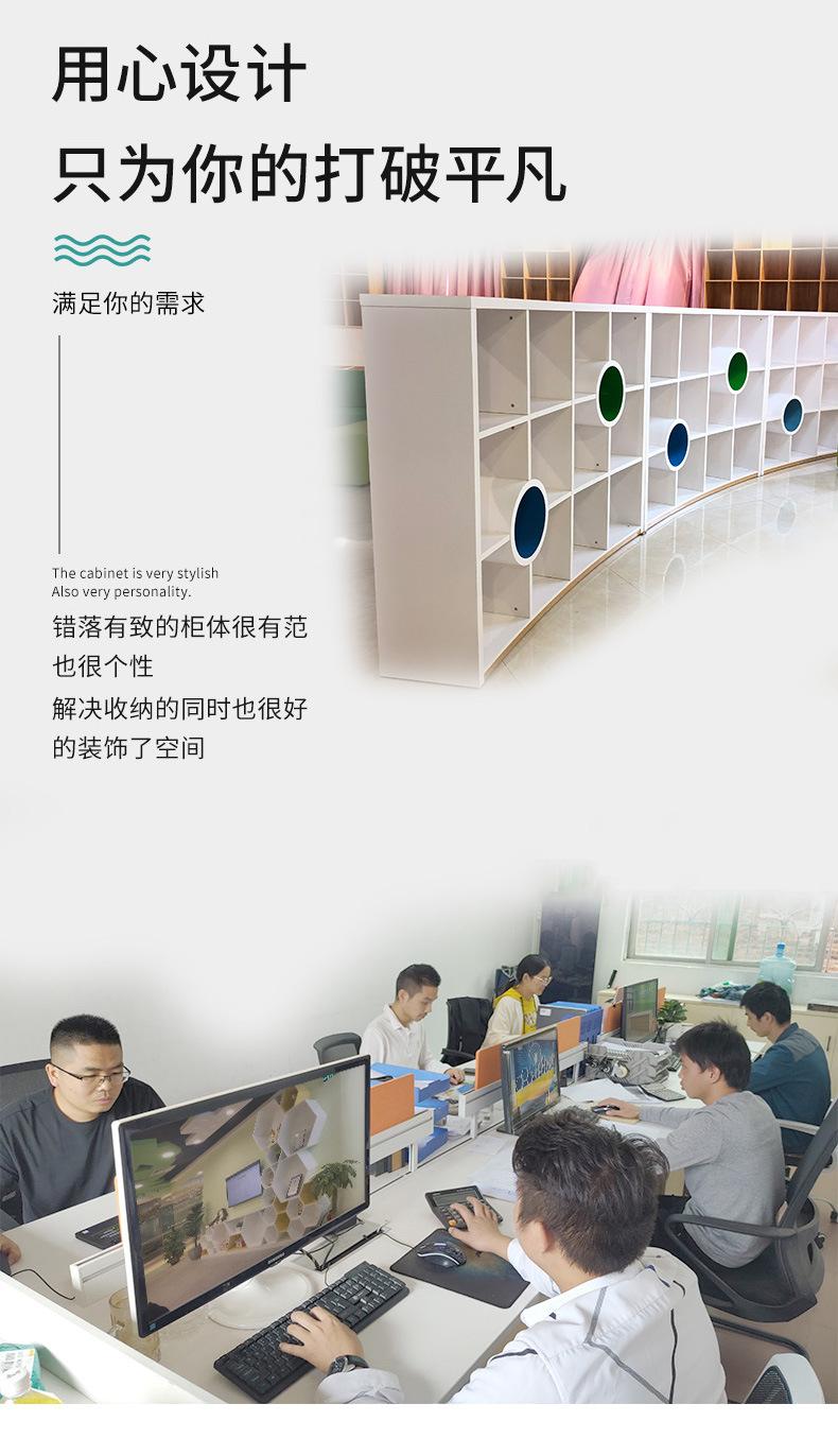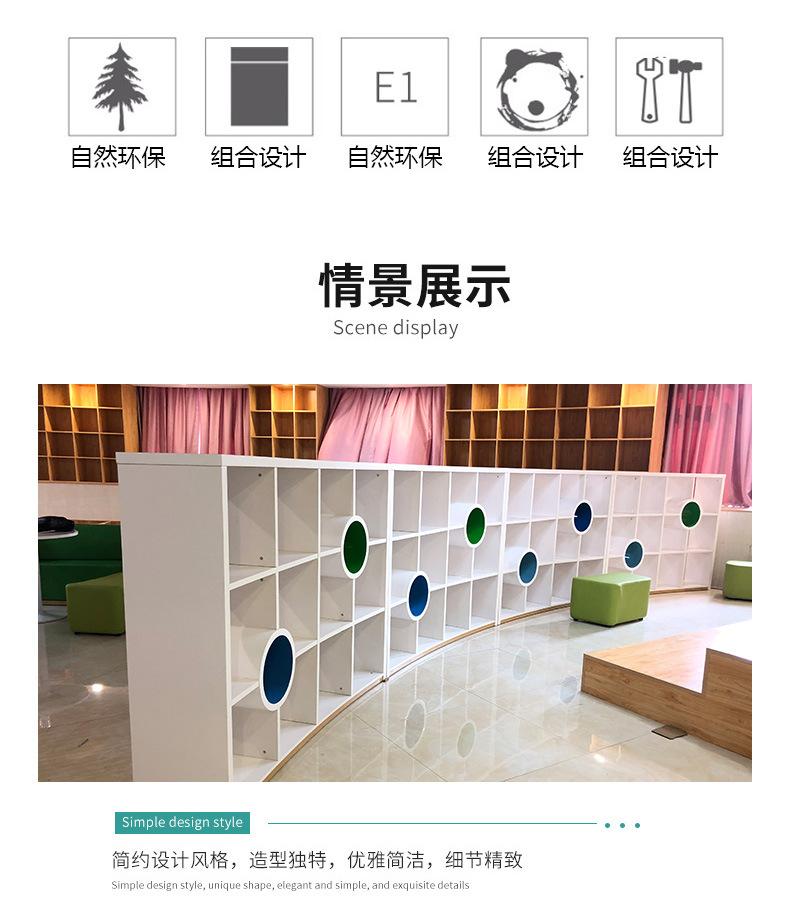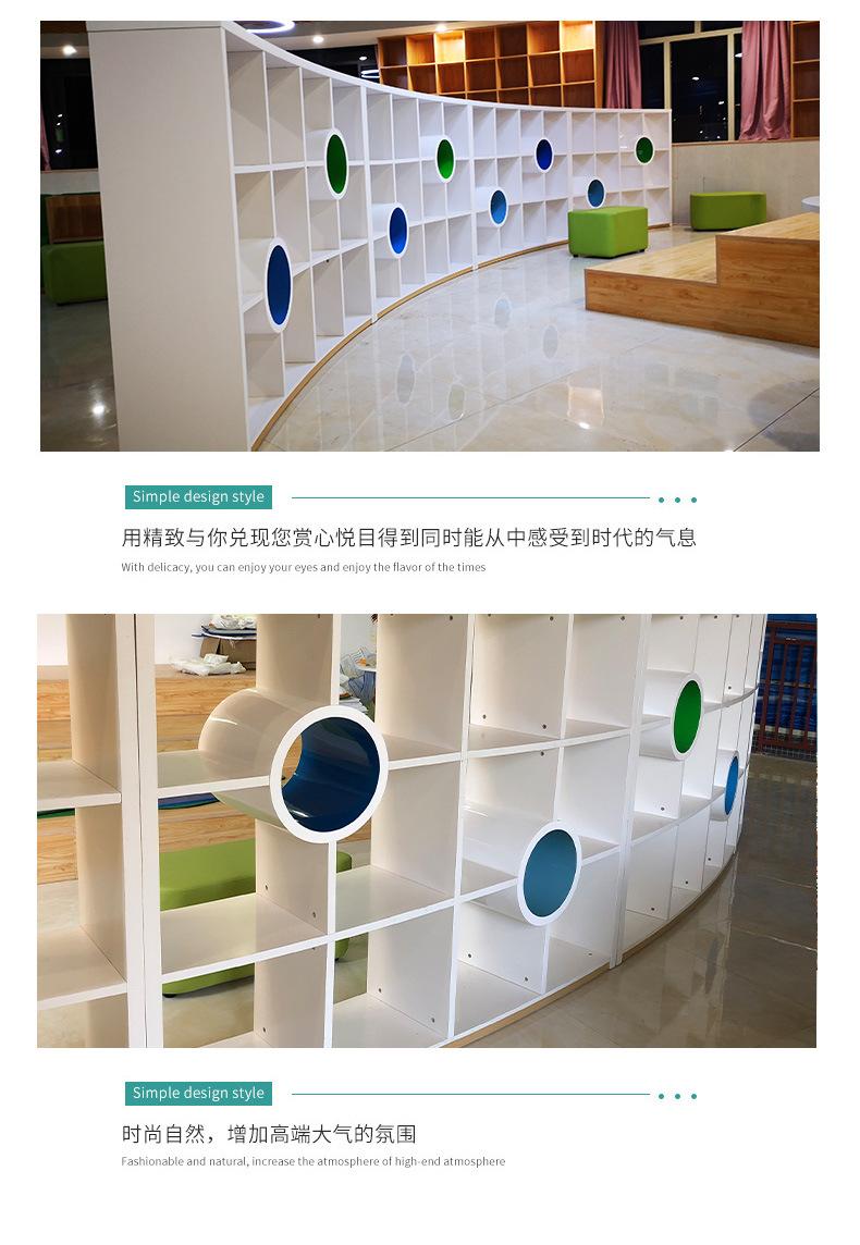 Estantería de piso curva simple, centro de capacitación, sala de exposiciones, vitrina de celosía, área de libros ilustrados para jardín de infantes, gabinete de almacenamiento, estantería