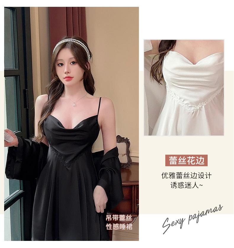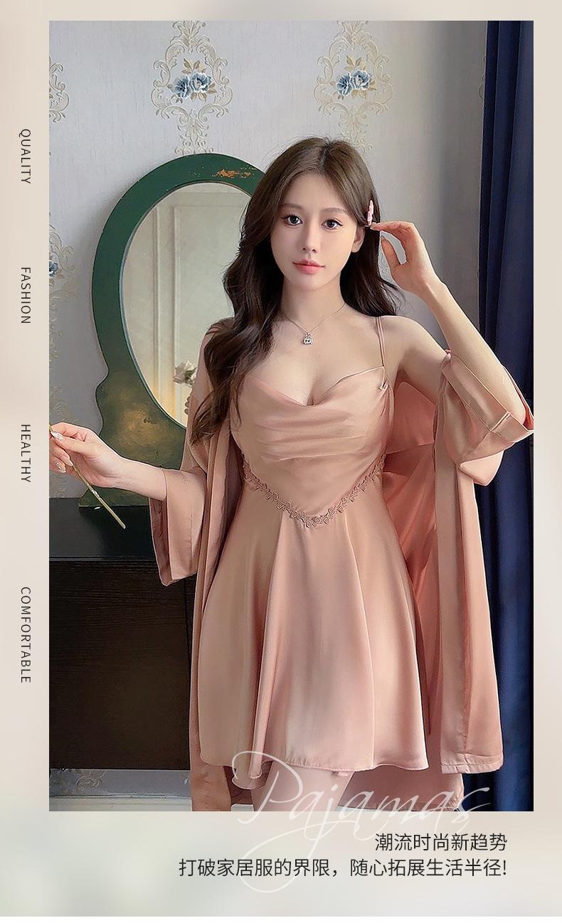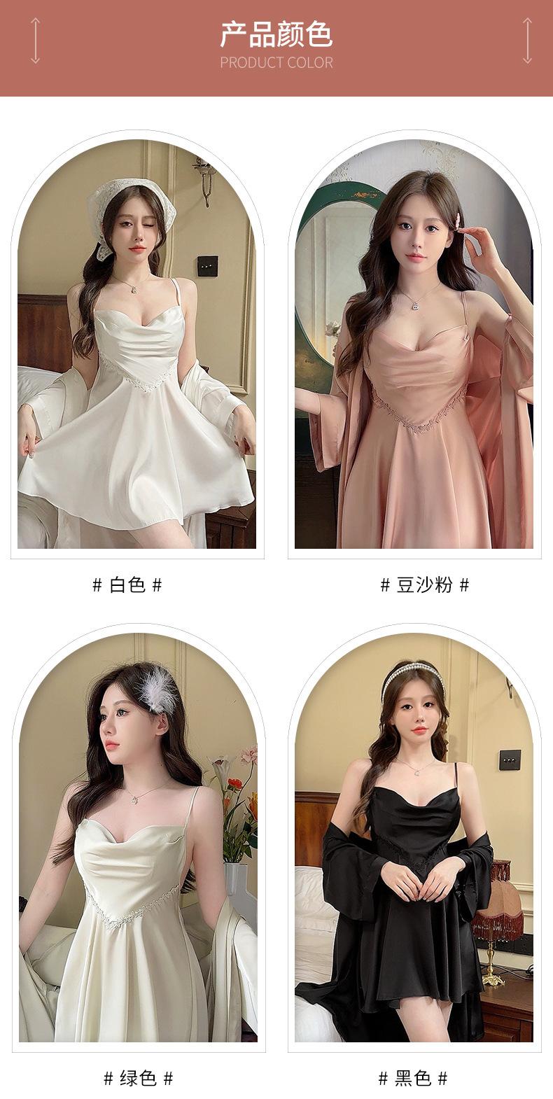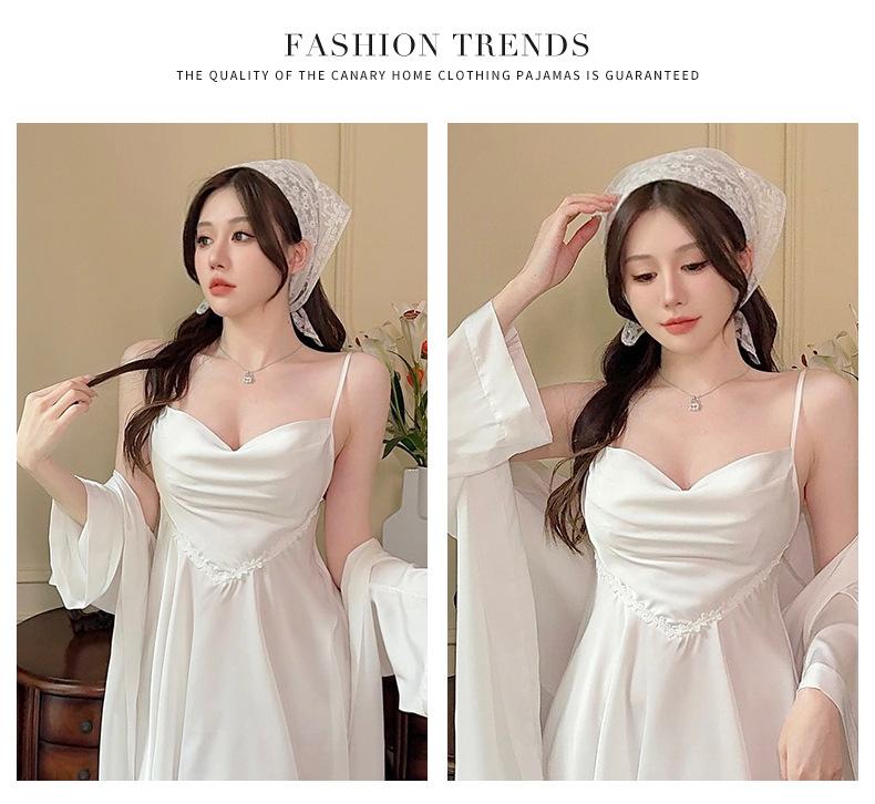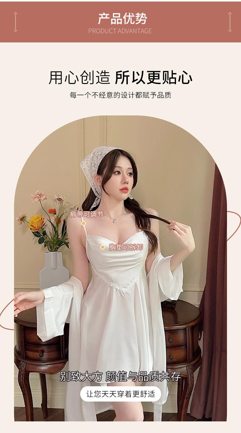 Nuevo Set de Ropa de Dormir de Satén Chifón con Cuello en V, Puro y Seductor, Pijama Cómodo y Transpirable con Almohadillas en el Pecho, Camisón Sexy