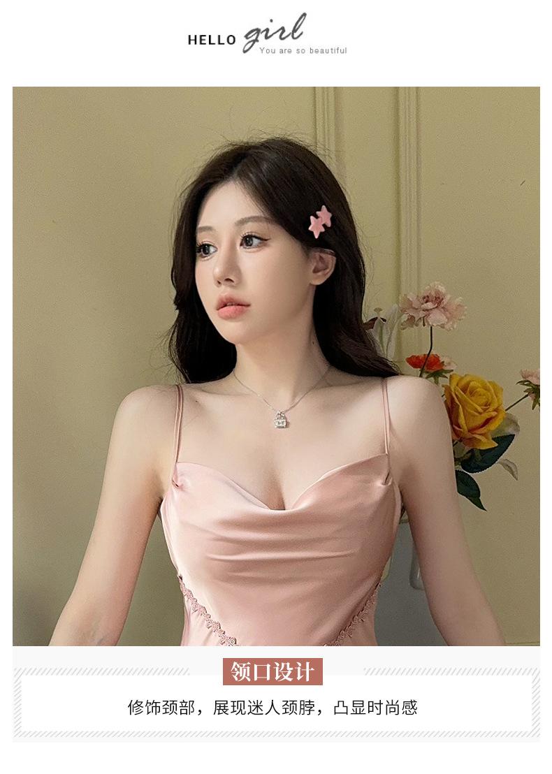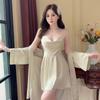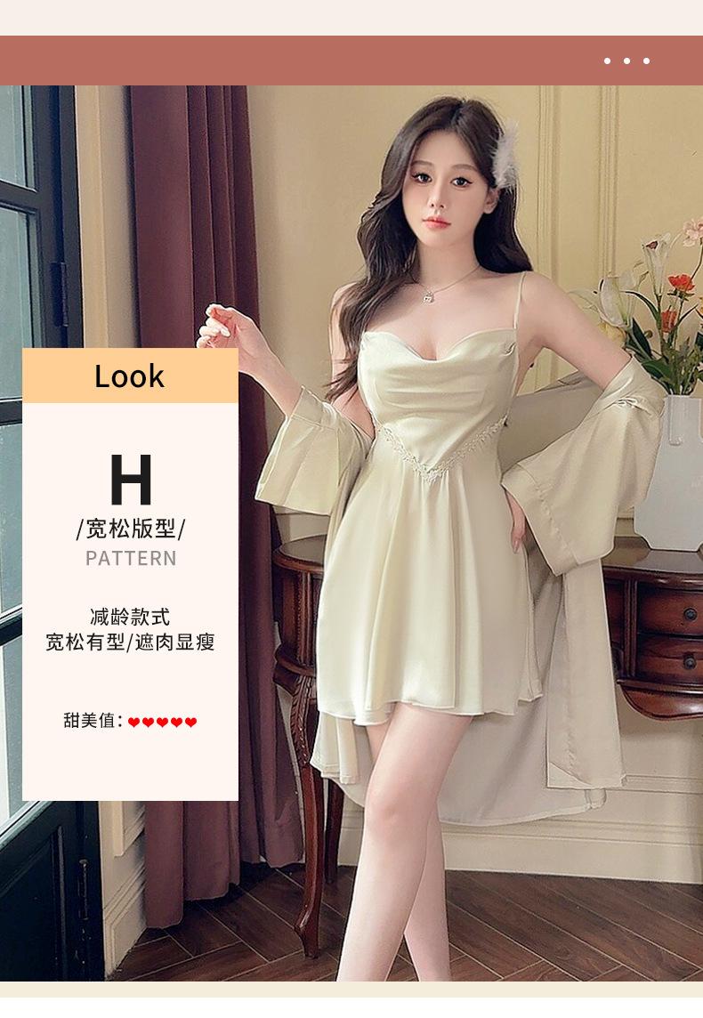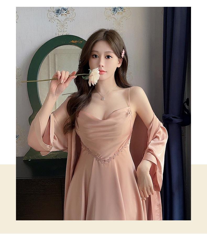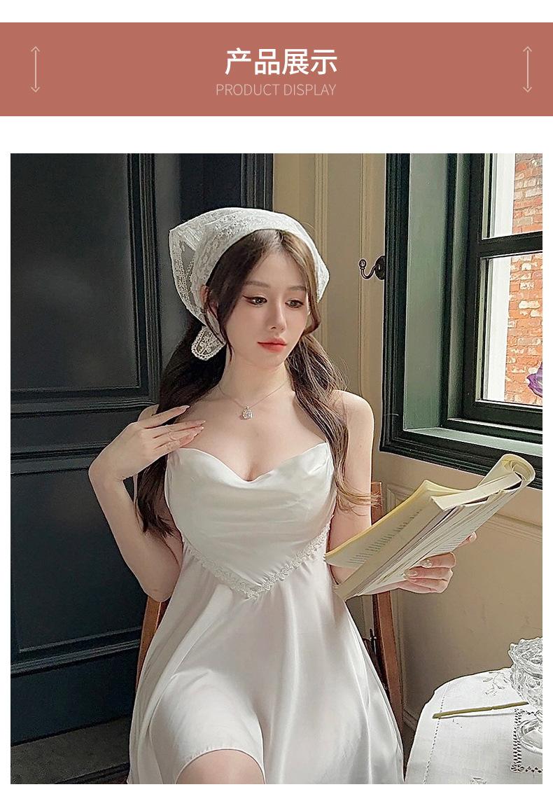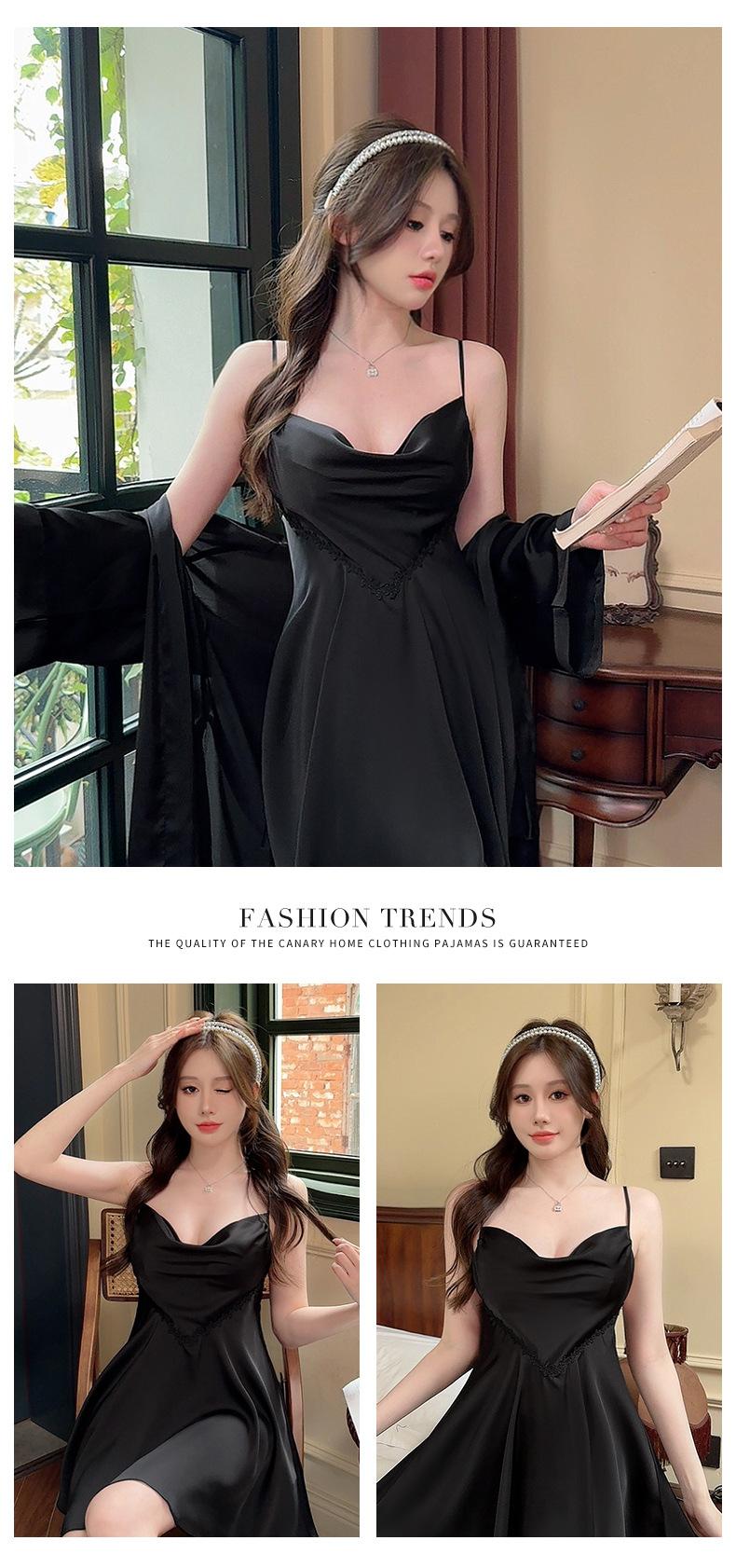 Nuevo Set de Ropa de Dormir de Satén Chifón con Cuello en V, Puro y Seductor, Pijama Cómodo y Transpirable con Almohadillas en el Pecho, Camisón Sexy