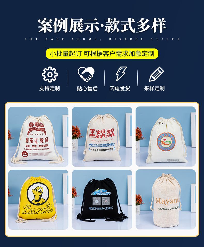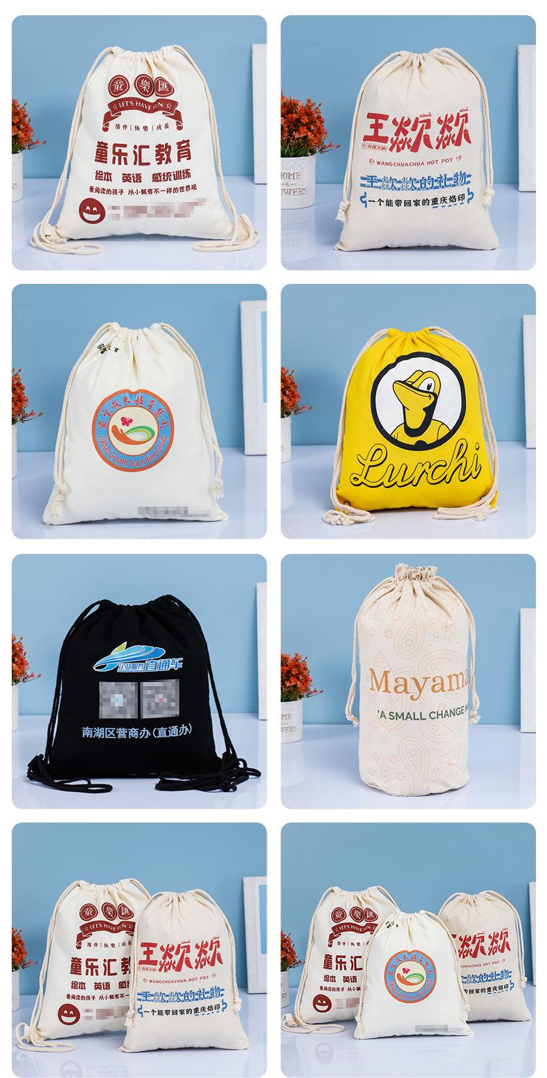Bolsa de Lona Paquete de Fábrica Regalo Personalizado Cordón Creativo Bolsa de Lona Algodón Paquete Bolsillo Logotipo Personalizado Imprimible