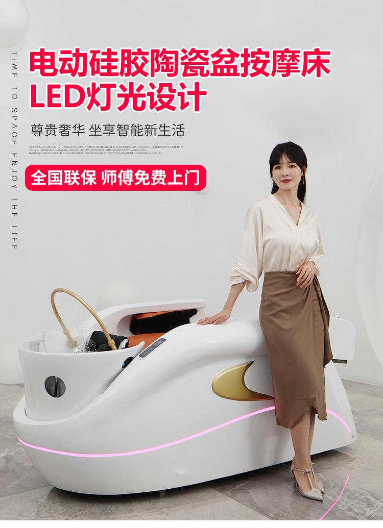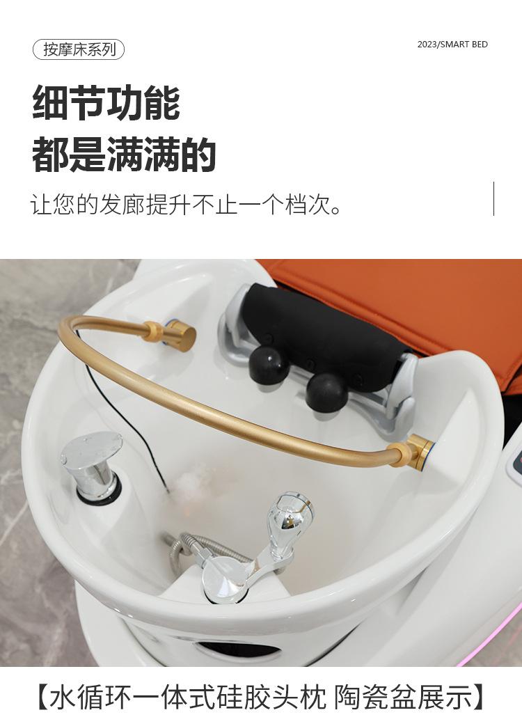 Cama de champú de masaje eléctrico inteligente totalmente automática con circulación de agua de alta gama para peluquería, peluquería, calefacción y fumigación corporal completa.