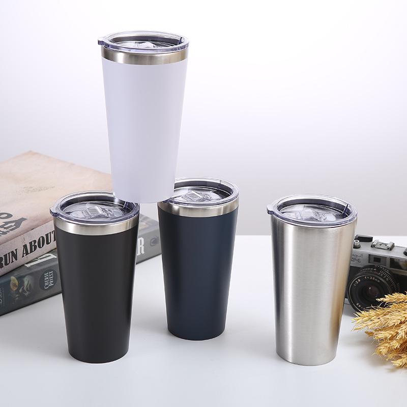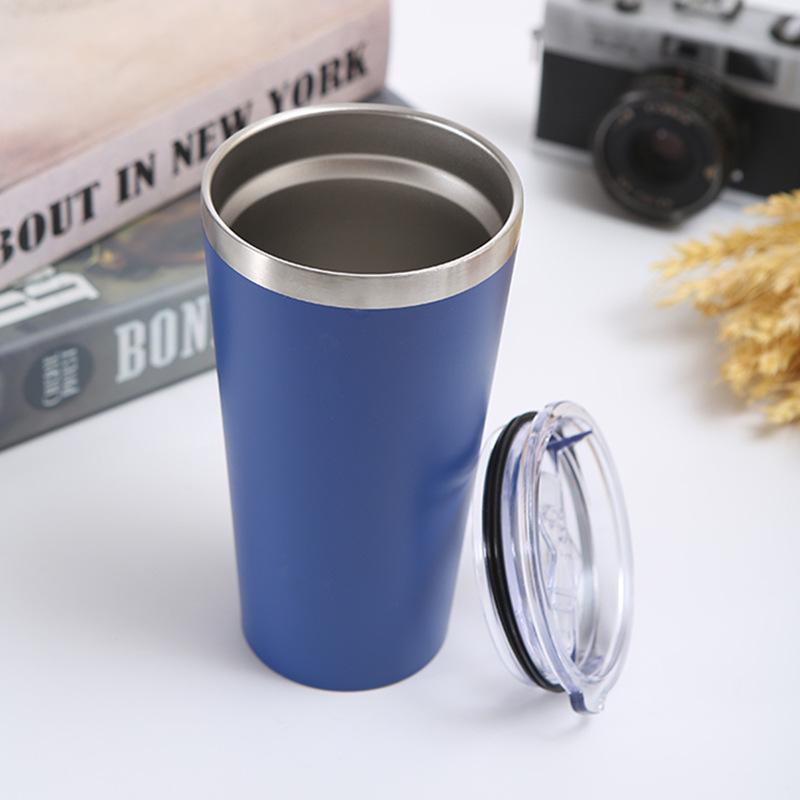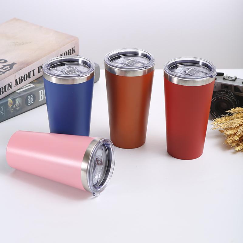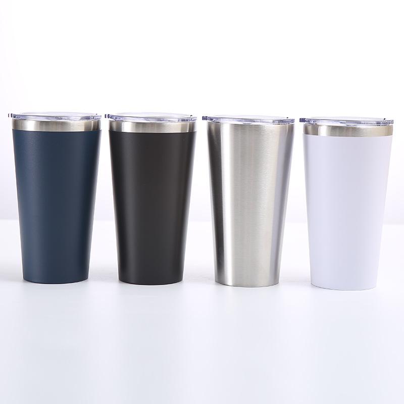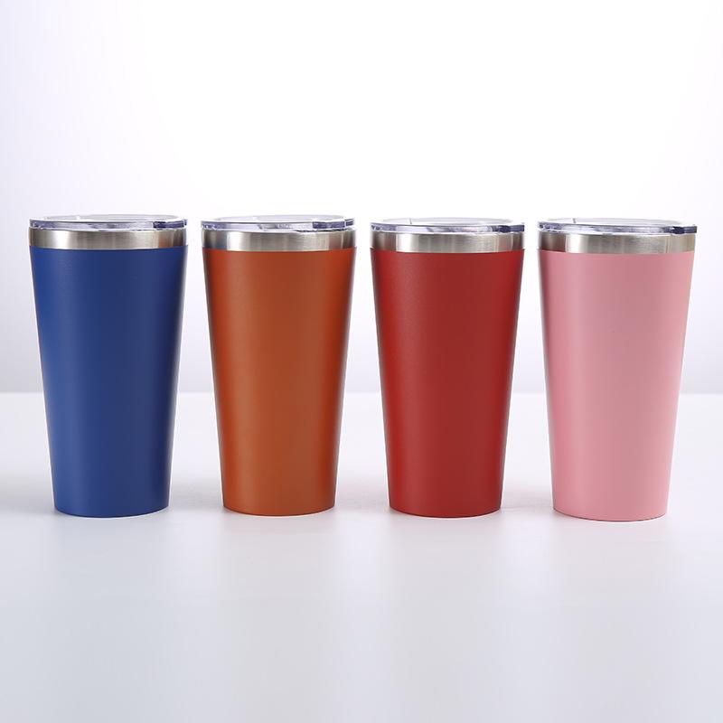 Nueva taza de acero inoxidable rociada con plástico para automóvil, cono de vacío de doble capa, taza de cerveza para exteriores, taza de hielo de 16 oz, logotipo imprimible