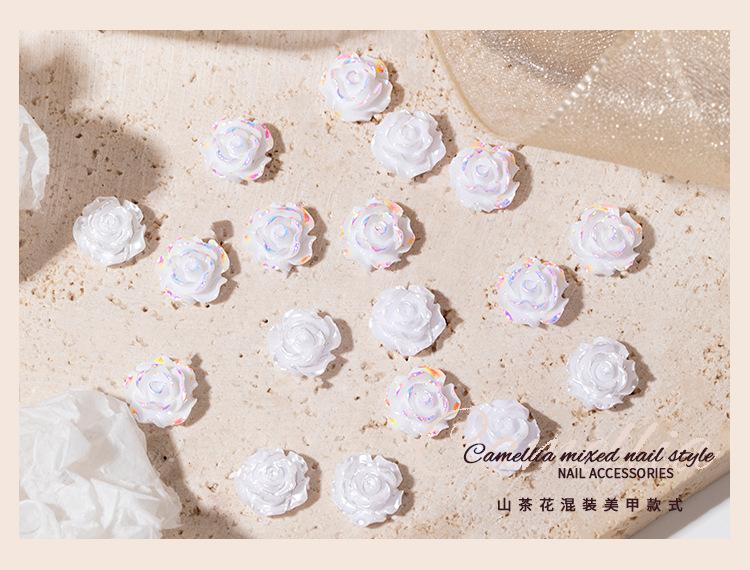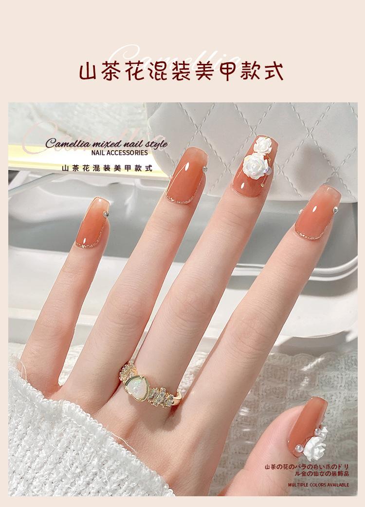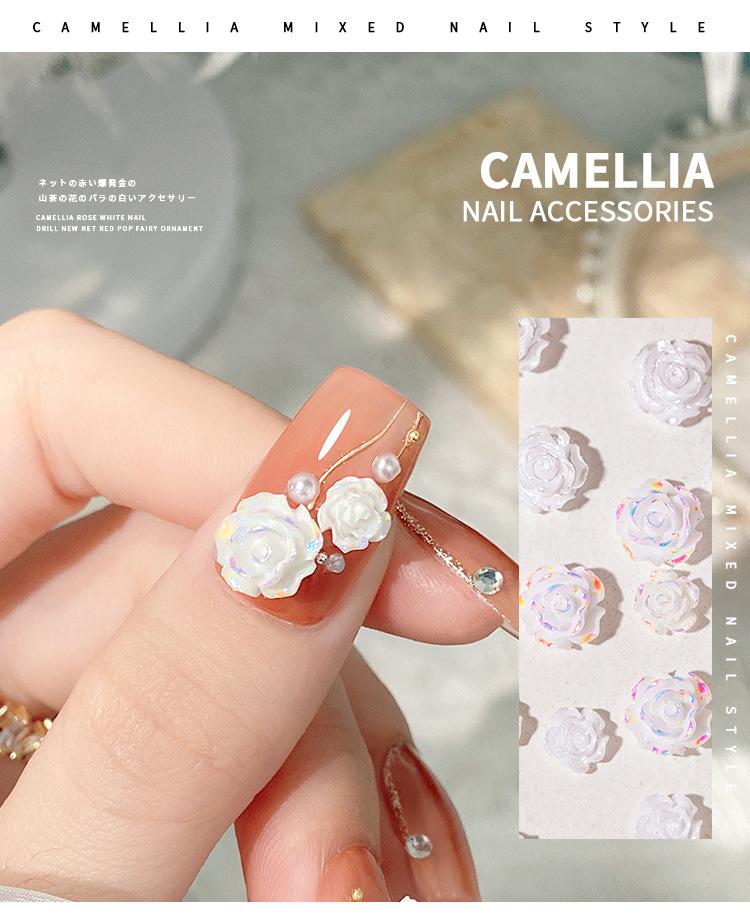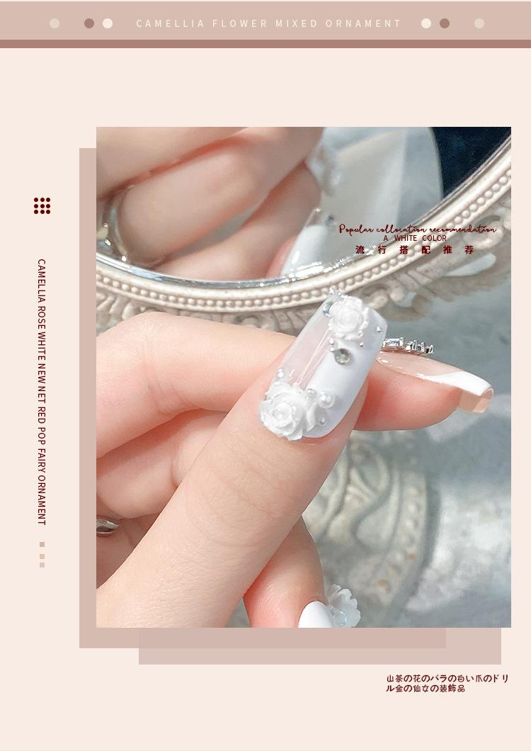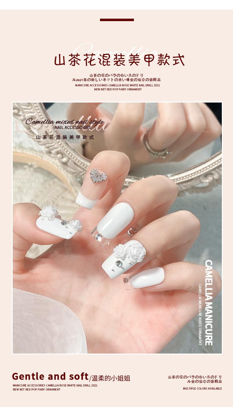 Joyería para Uñas Camelia 2025 Nuevo Estéreo Flor Rosa Blanca Decoración de Uñas Diamante Popular Accesorios Calientes