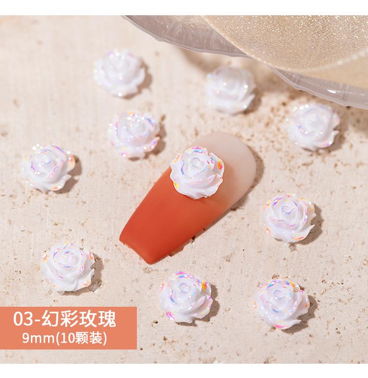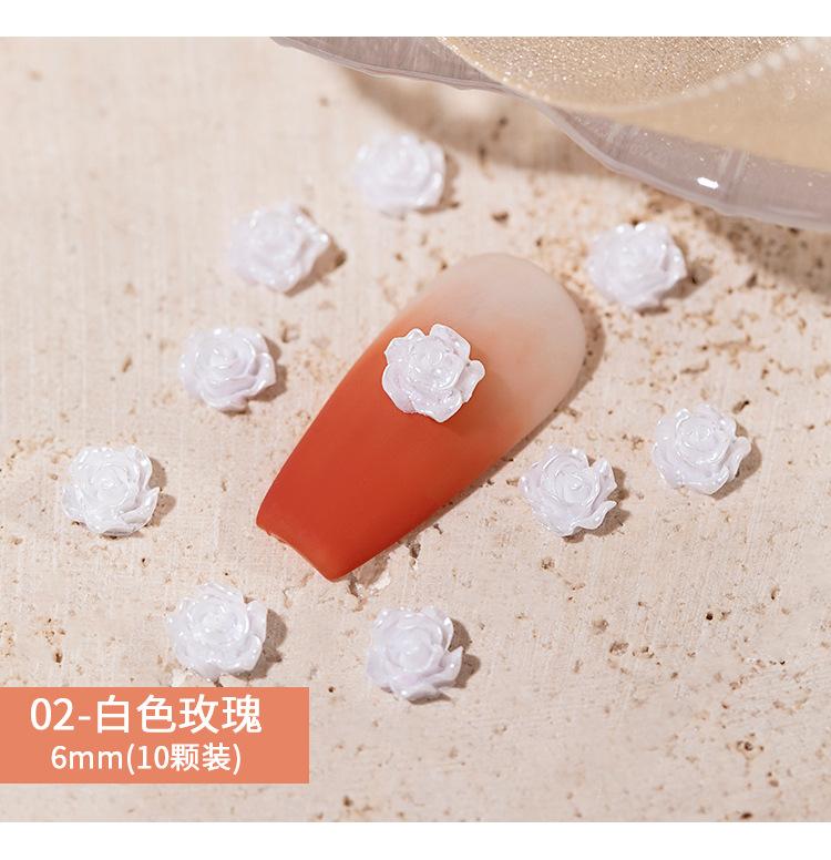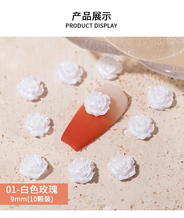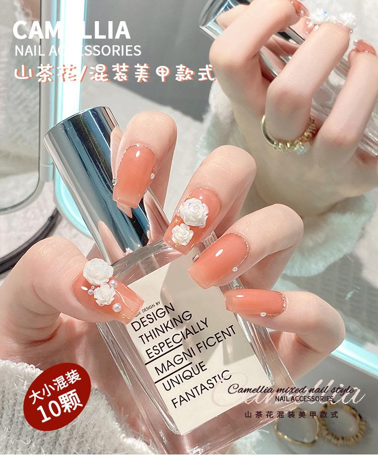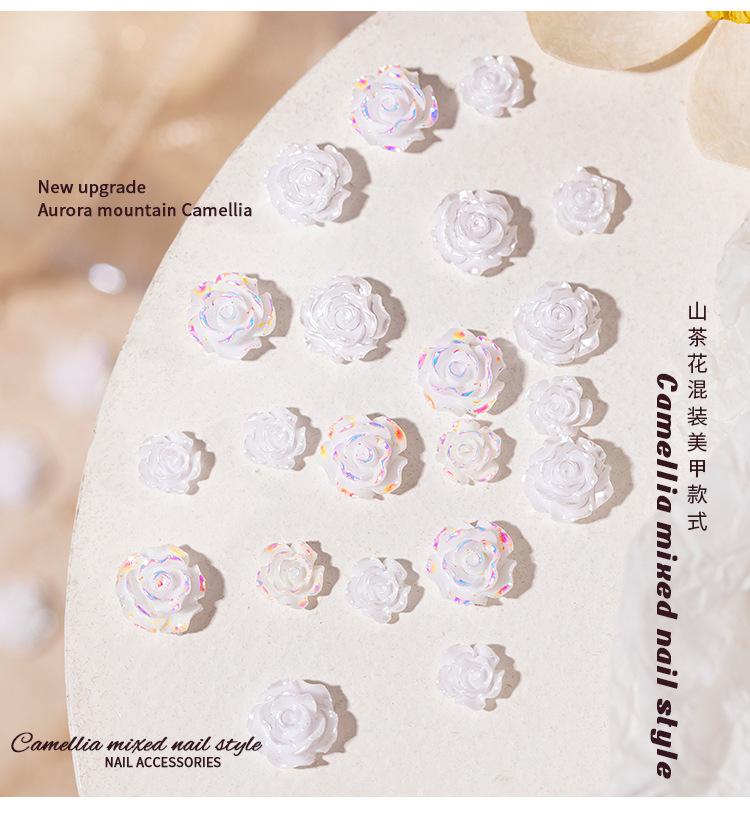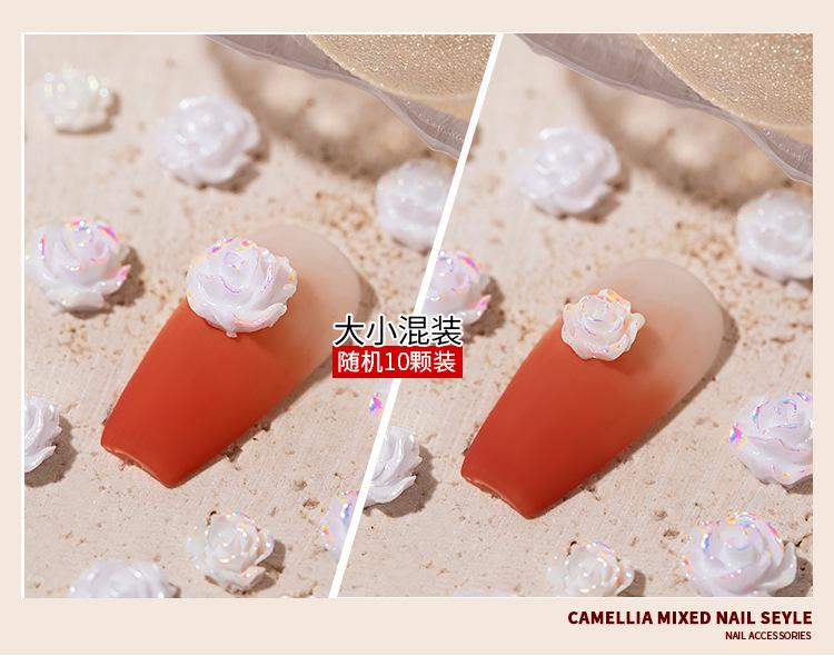 Joyería para Uñas Camelia 2025 Nuevo Estéreo Flor Rosa Blanca Decoración de Uñas Diamante Popular Accesorios Calientes