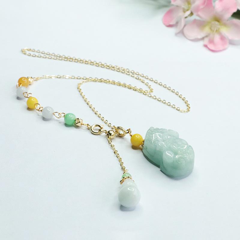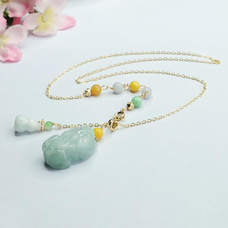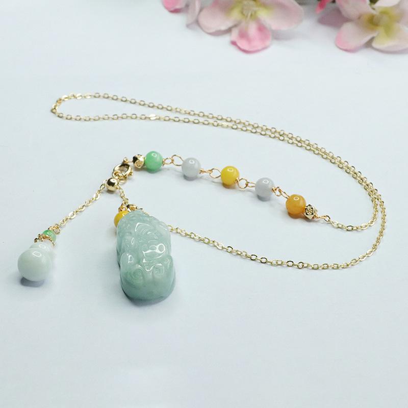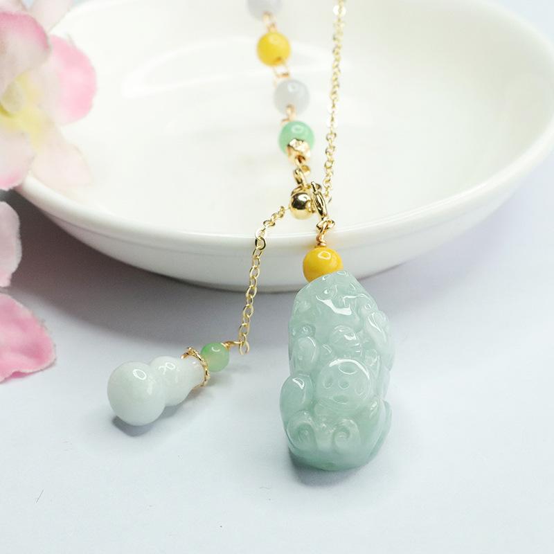 Emerald Pixiu Gourd Tri-color Bead Necklace