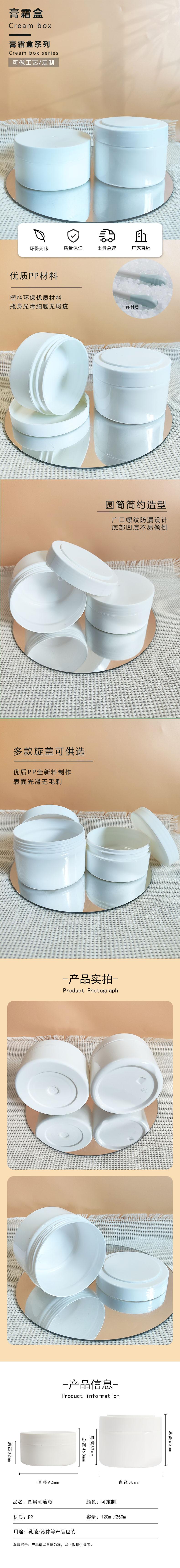 Botella de plástico PP de 120/250 ml para crema, color blanco sólido, con fondo plano, para mascarillas de barro y cosméticos, caja de embalaje portátil.