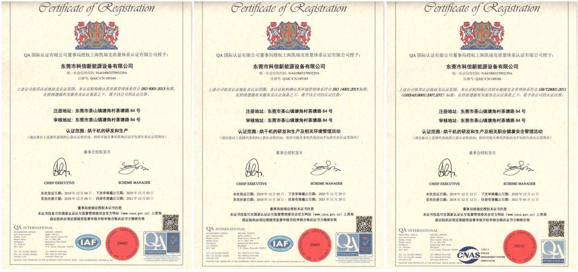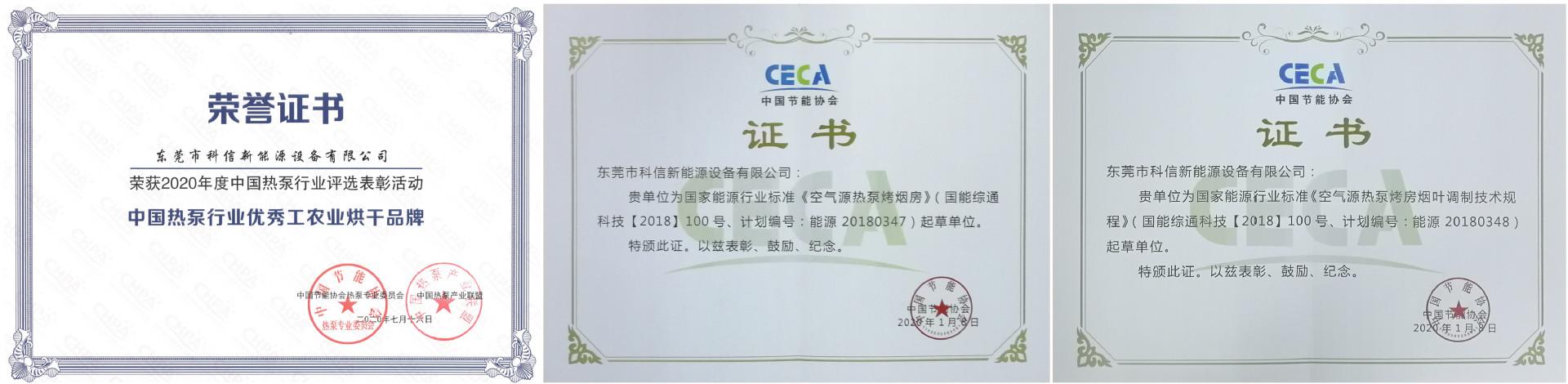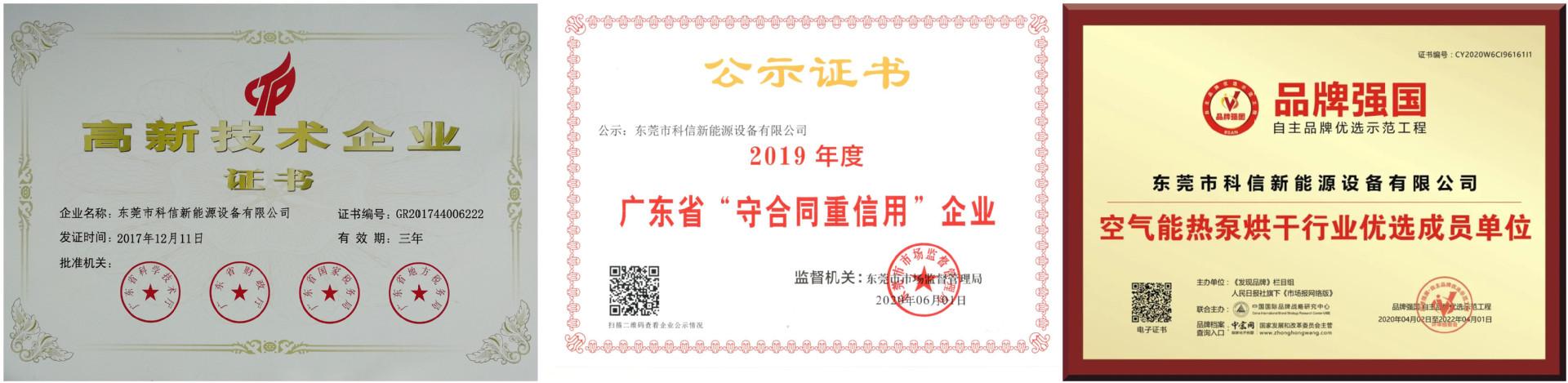 Certificado de Empresa de Alta Tecnología "Empresa Cumplidora de Contratos y Soltera" Unidad miembro preferida de la industria del secado con bomba de calor de energía de aire