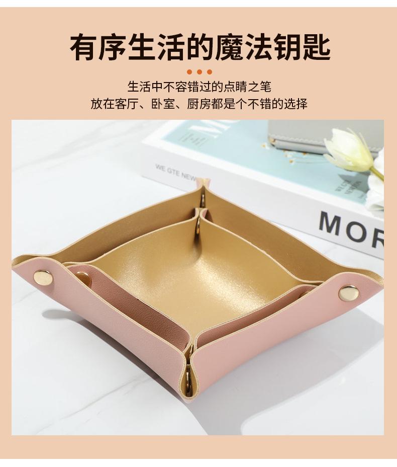 Caja de almacenamiento de piel cuidadosamente seleccionada, caja de almacenamiento para llaves de entrada de escritorio, almacenamiento de cosméticos y joyas, artículos para el hogar en stock
