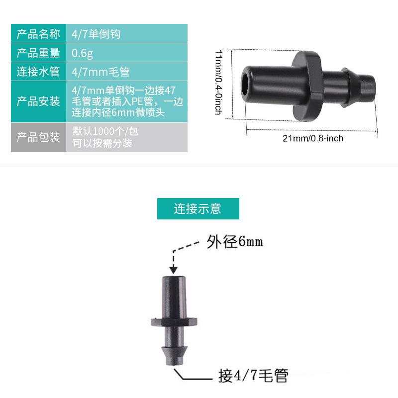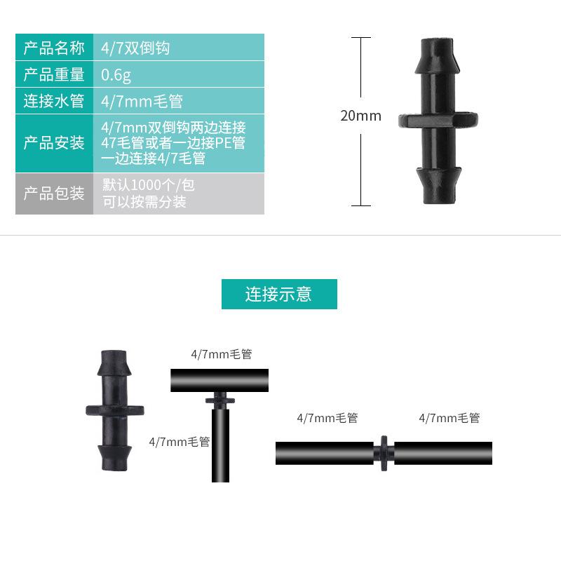 Accesorios para sistema de riego por goteo, junta de tubería de lana de 47 mm, conector recto de una sola púa, accesorios para tubería de riego automático de jardín
