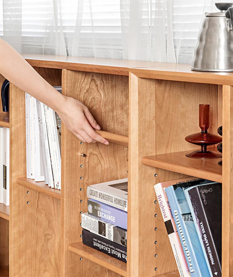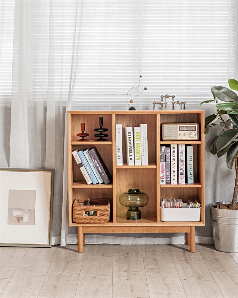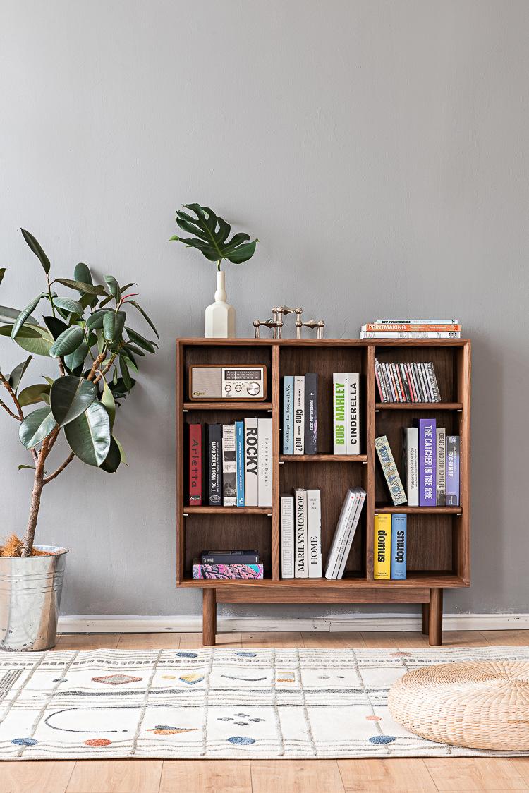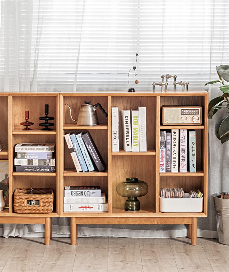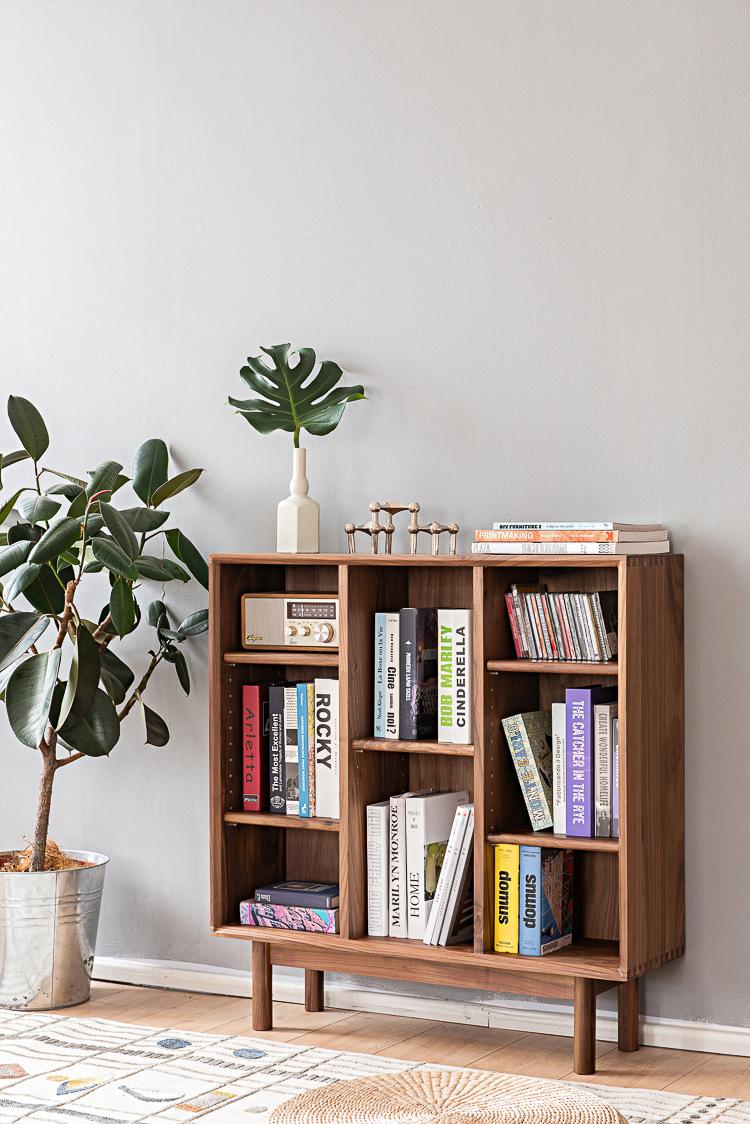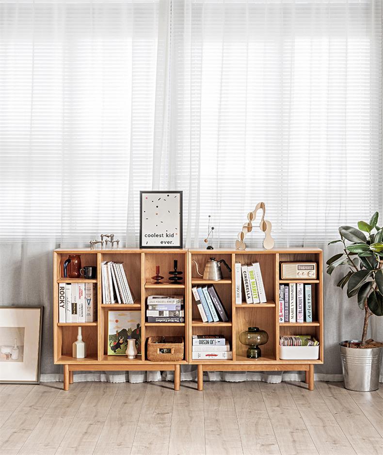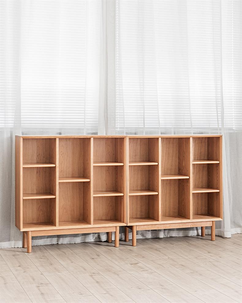 Estantería sencilla de madera maciza de cerezo y nogal negro, estantería nórdica moderna con combinación de muebles de troncos
