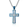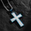 Collar con cruz de diamantes de dos colores con patrón aleatorio nuevo y original, listo para la venta, colgante con accesorios de acero de titanio para hombres.