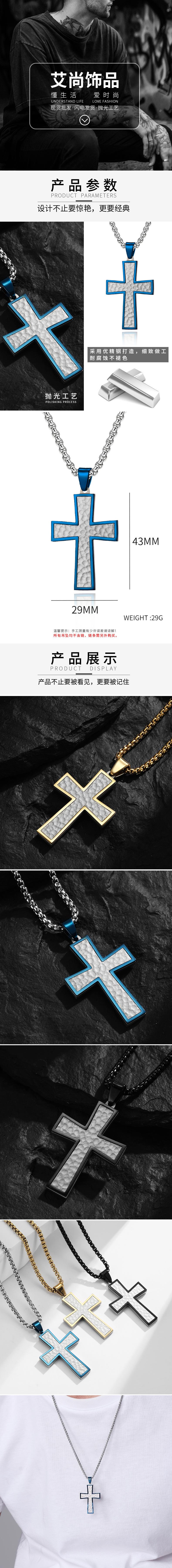 Nuevo colgante de cruz con incrustaciones de dos colores de acero de titanio para hombres europeos y americanos, diseño original, collar retro de hip-hop para hombres