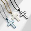 Collar con cruz de piedra con incrustaciones de arena, de acero dorado con borde biselado estampado, original de Europa y América, para hombre, colgante de ropa sencillo para hombre