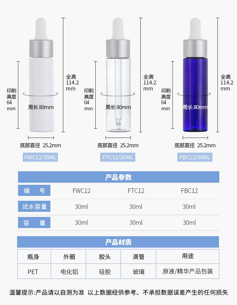 Xumin Packaging Cosmetics Frasco gotero transparente de 30 ml, botella de esencia blanca, subbotella de viaje, productos para el cuidado de la piel, materiales de embalaje