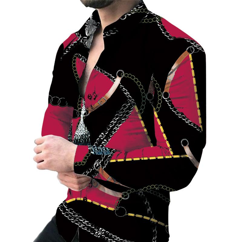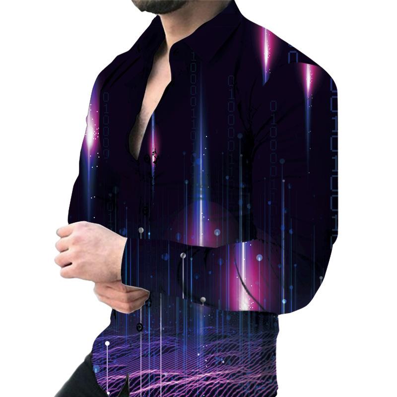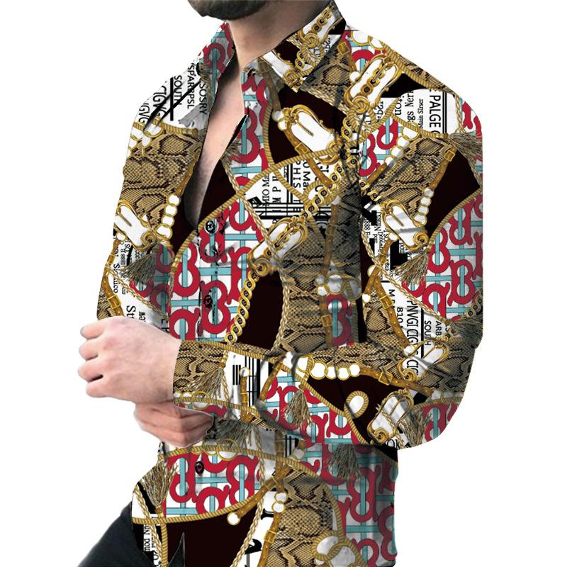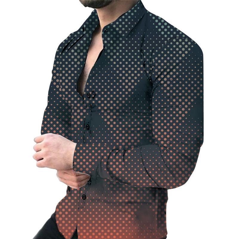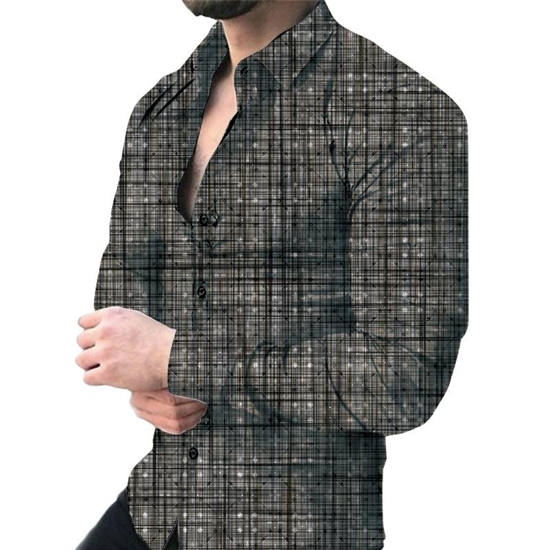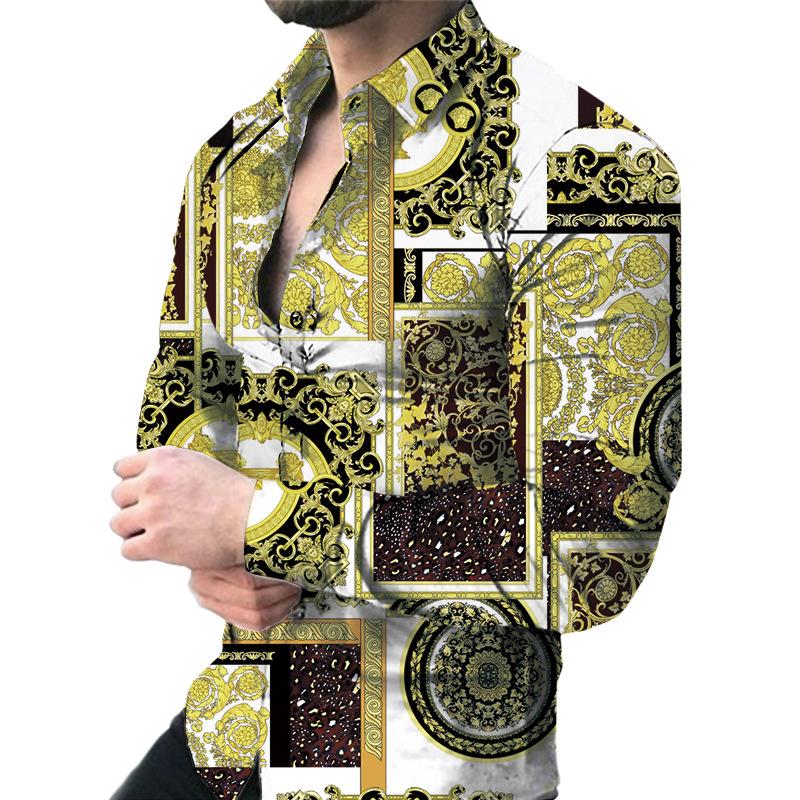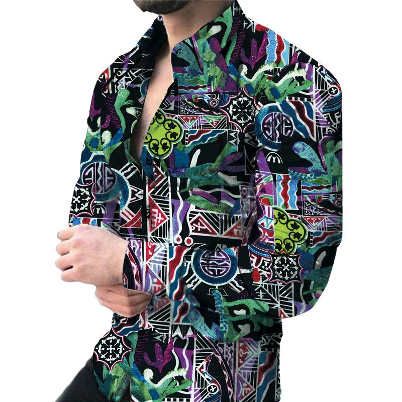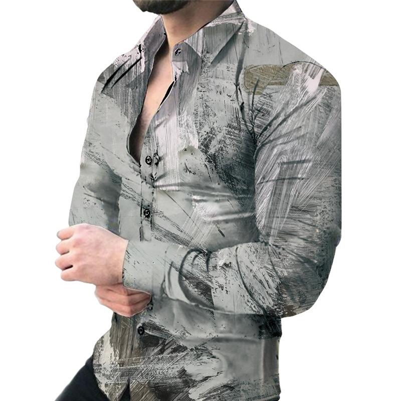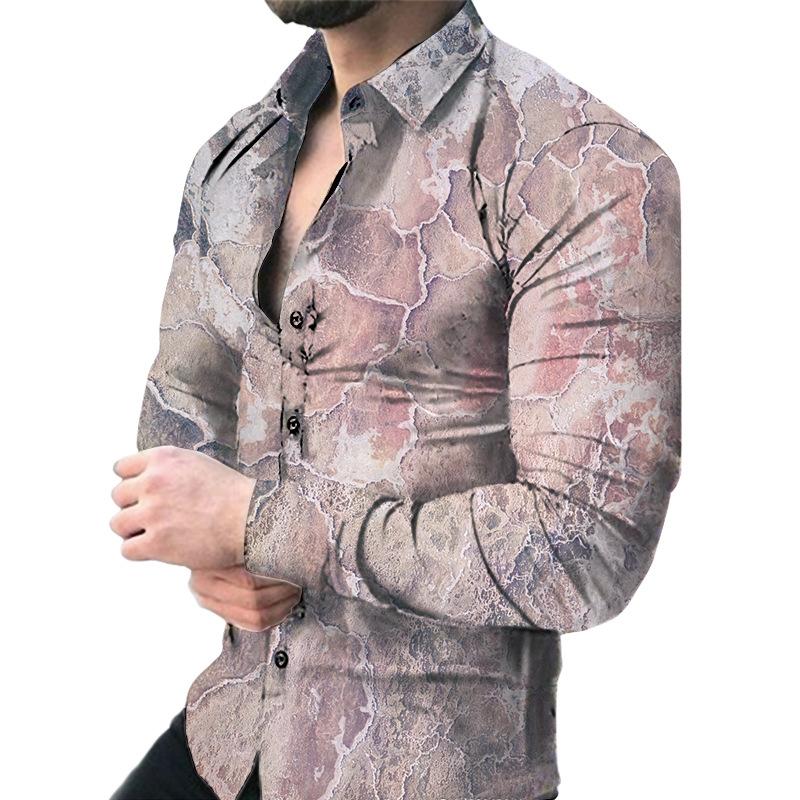 Primavera Comercio Exterior Nuevo Camisa Cárdigan Casual Slim de Solapa de Manga Larga con Estampado Floral Digital para Hombre