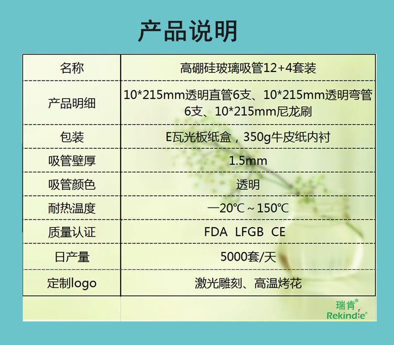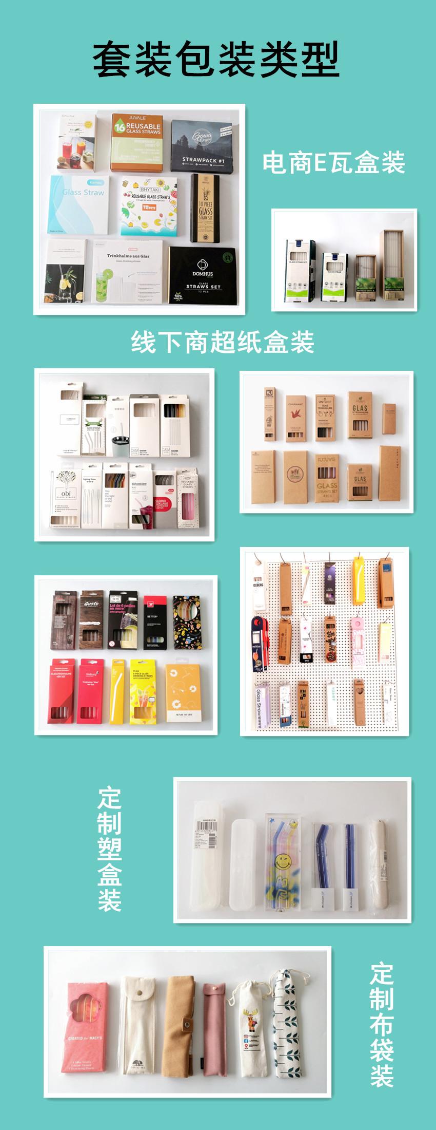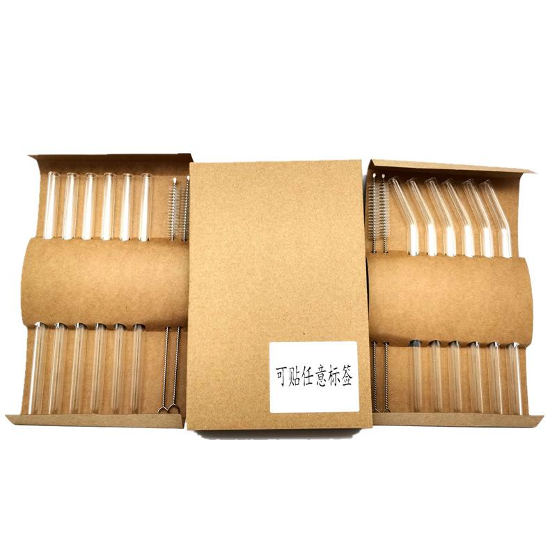 Popotes de Vidrio, Popotes de Vidrio de Alto Borosilicato, Resistentes a Caídas, Set de Cartón, Comercio Electrónico Transfronterizo, Transparentes, Coloridos, en Stock, Venta al por Mayor