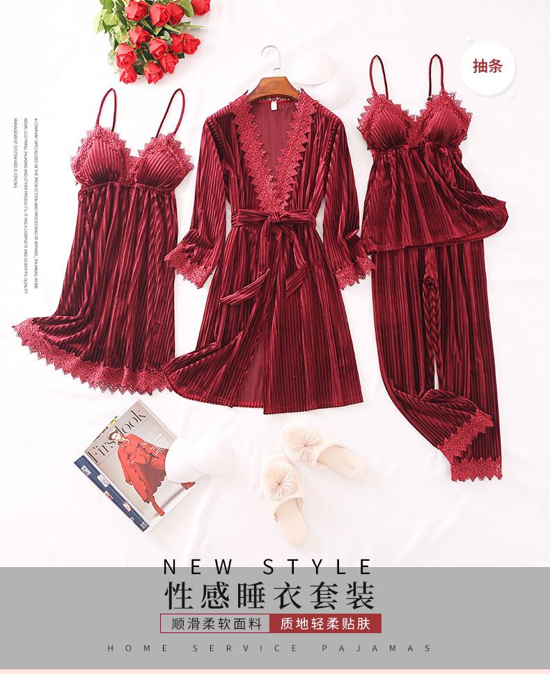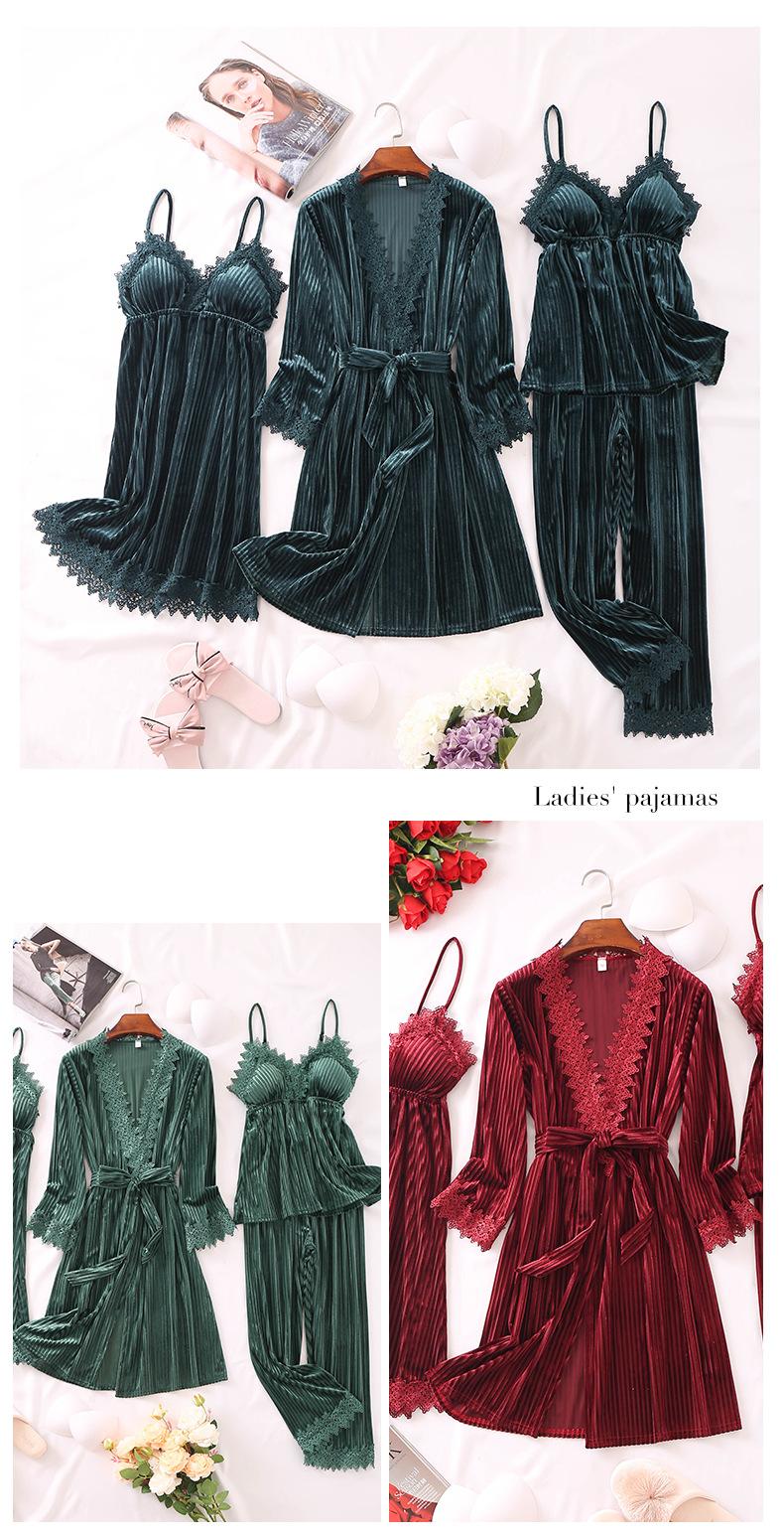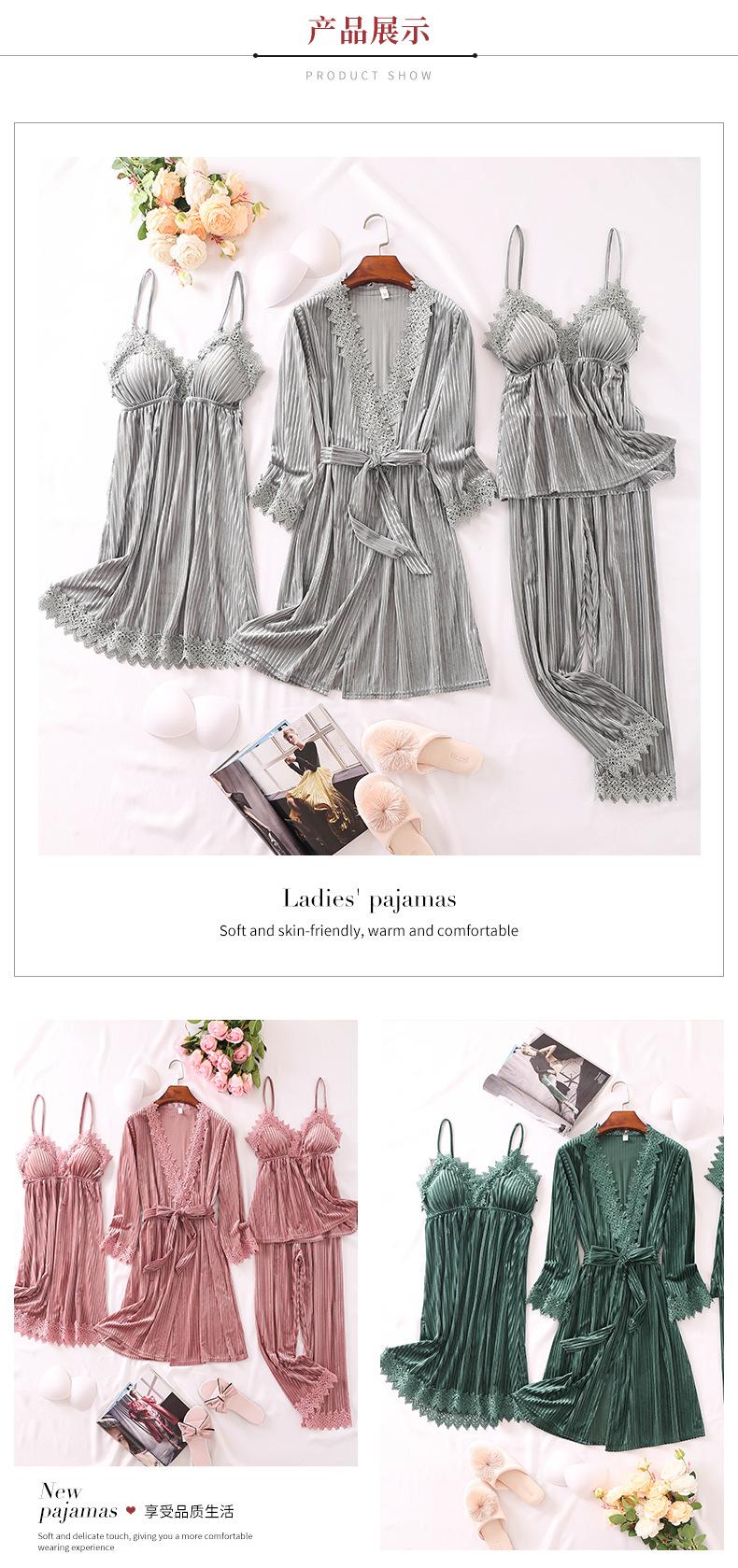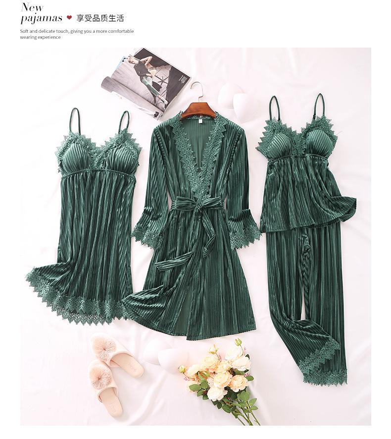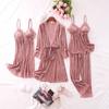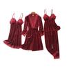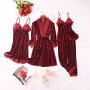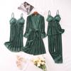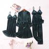 Pijama de cuatro piezas fino con cuello en V y tirantes sexy a la moda, ropa de casa informal y cómoda, novedad de 2024