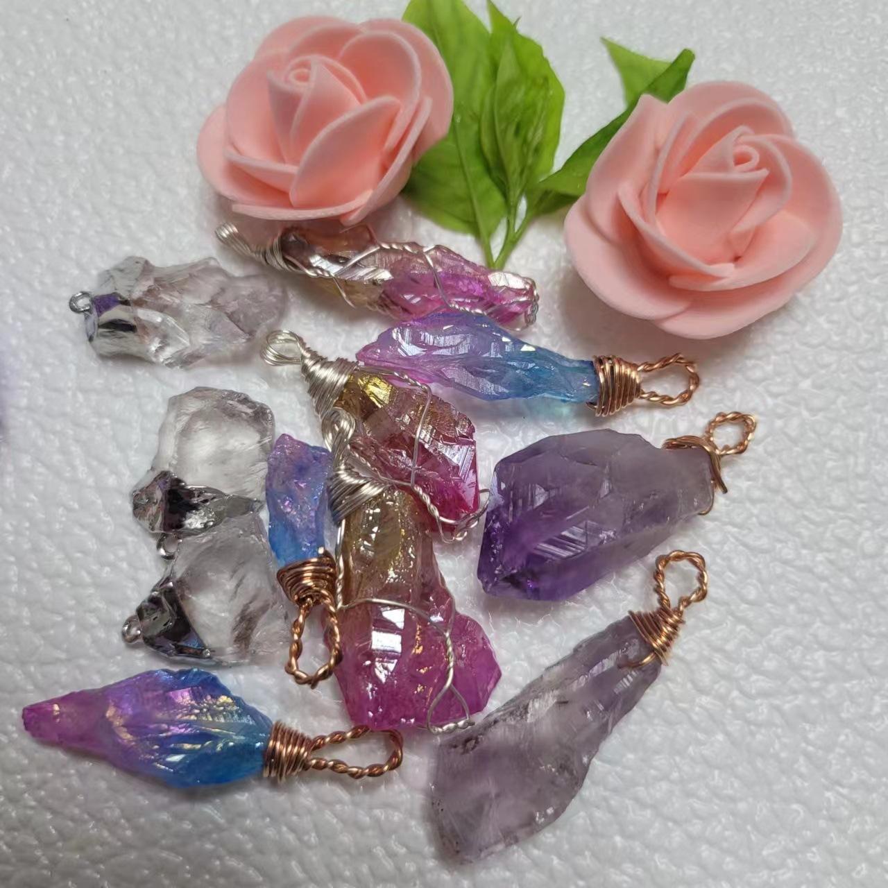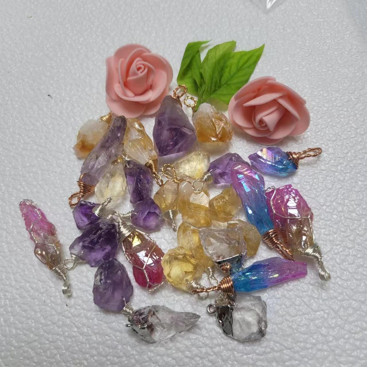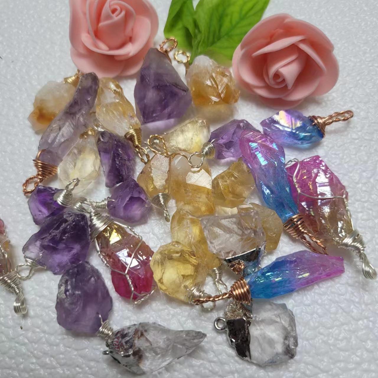 Colgante colorido de piedra cruda de cristal natural al por mayor de fábrica, colgante para bolso de mujer, decoración interior, joyería, colgante para ropa
