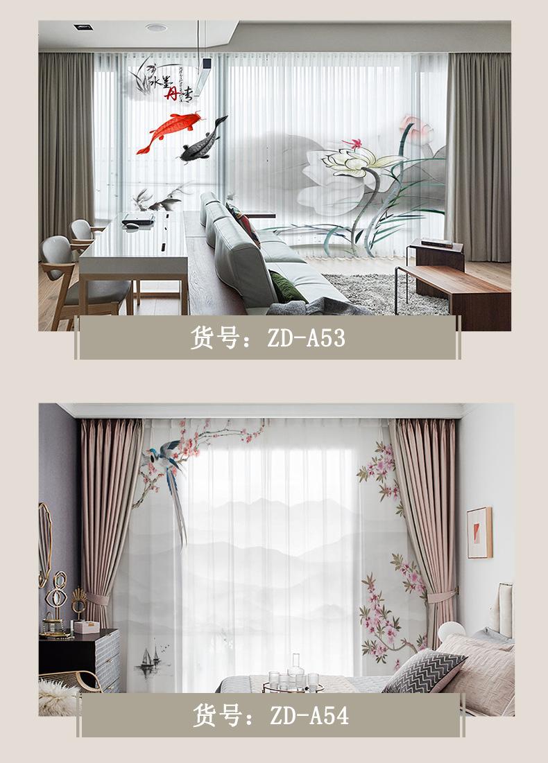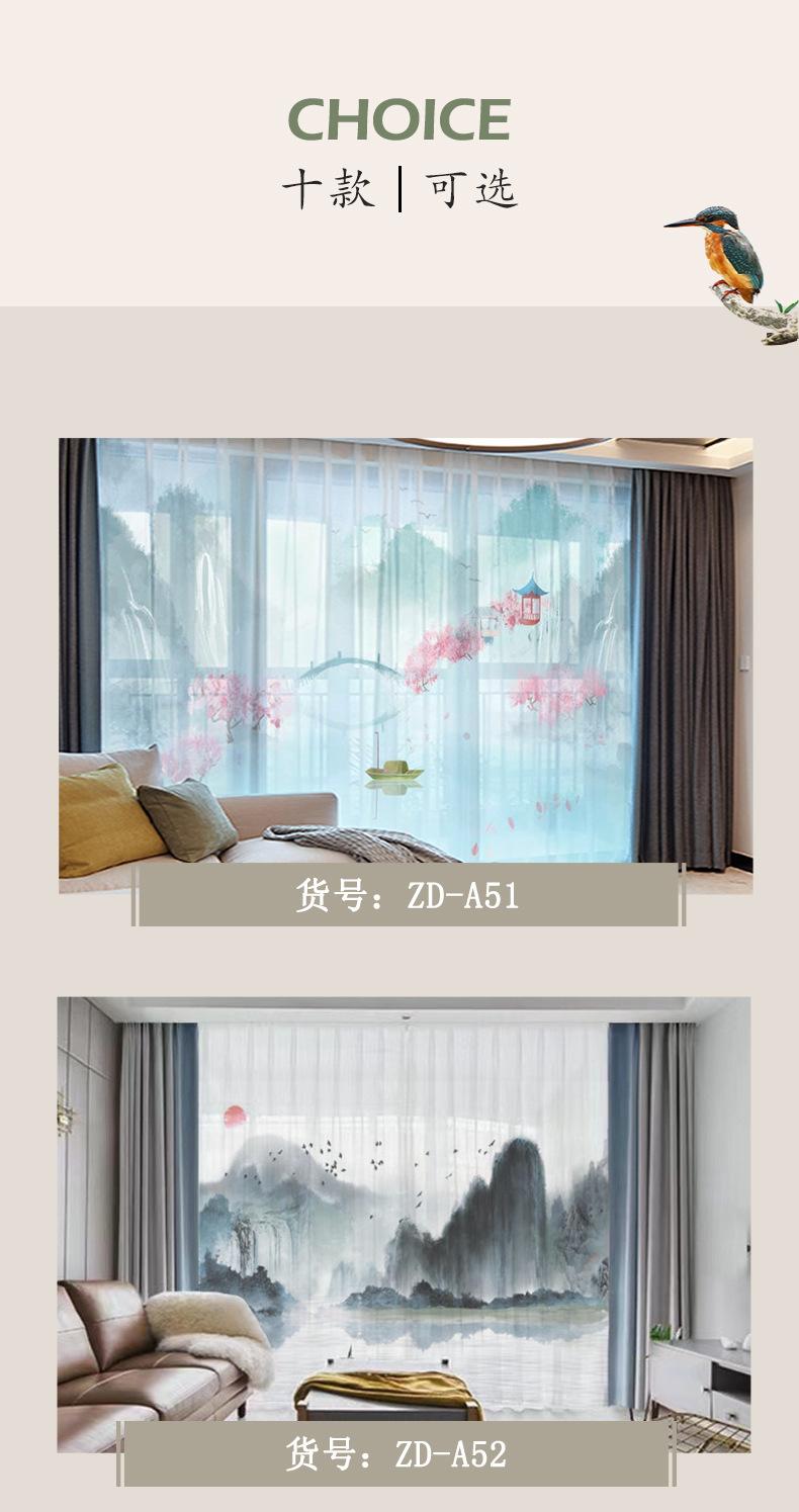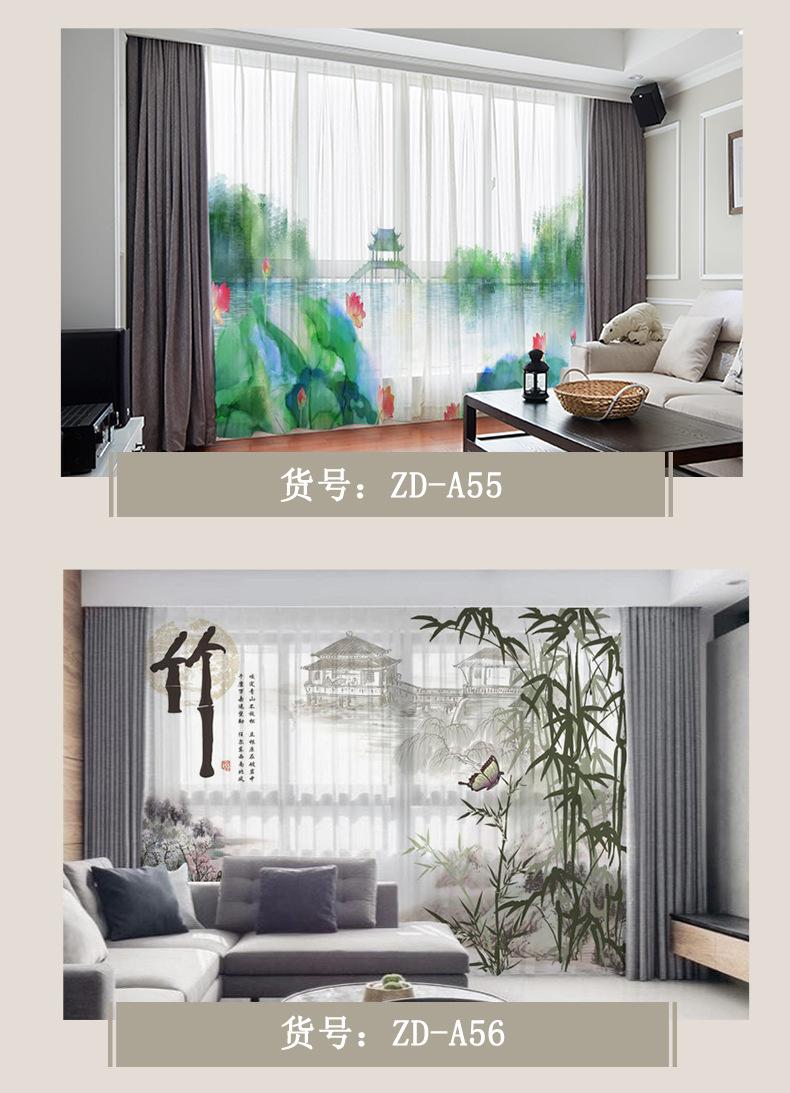 Nueva mosquitera de impresión digital chifón chino producto terminado muestra de dibujo tinta estilo chino mosquitera