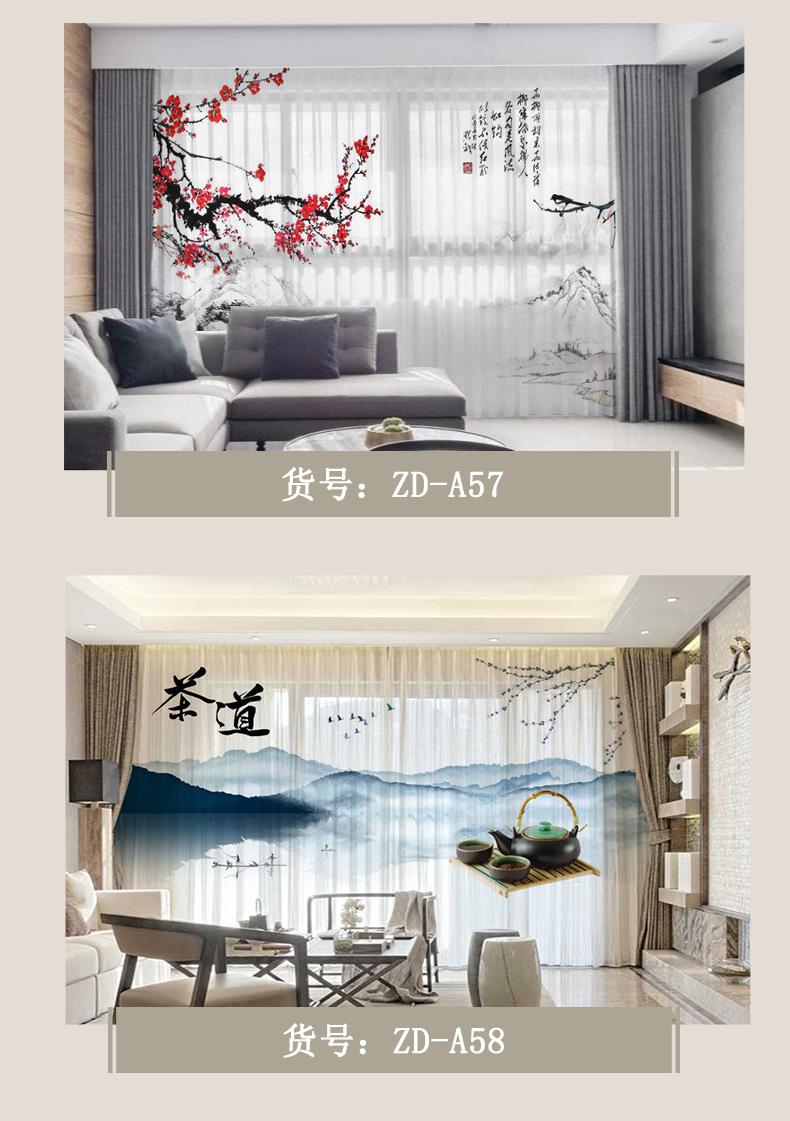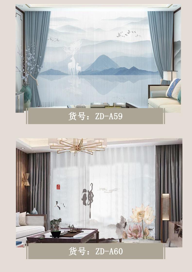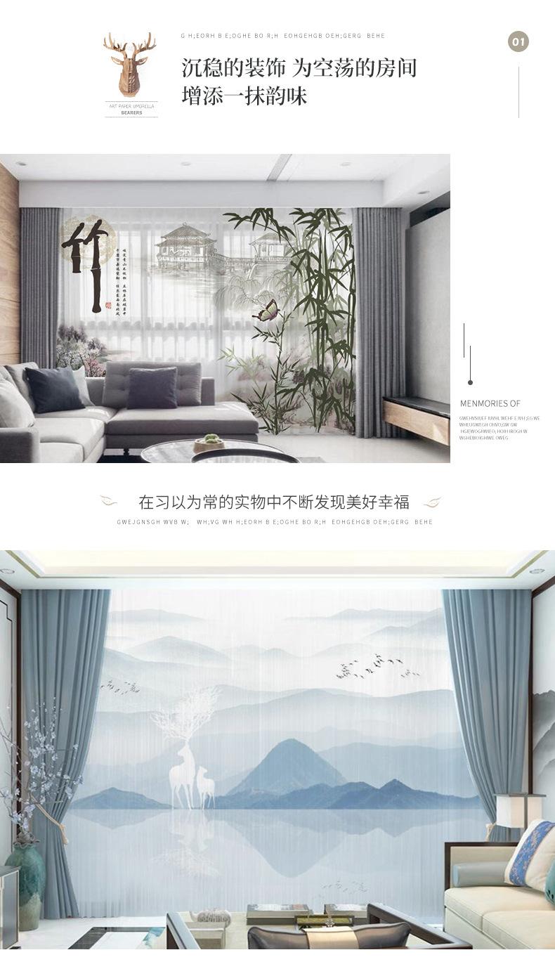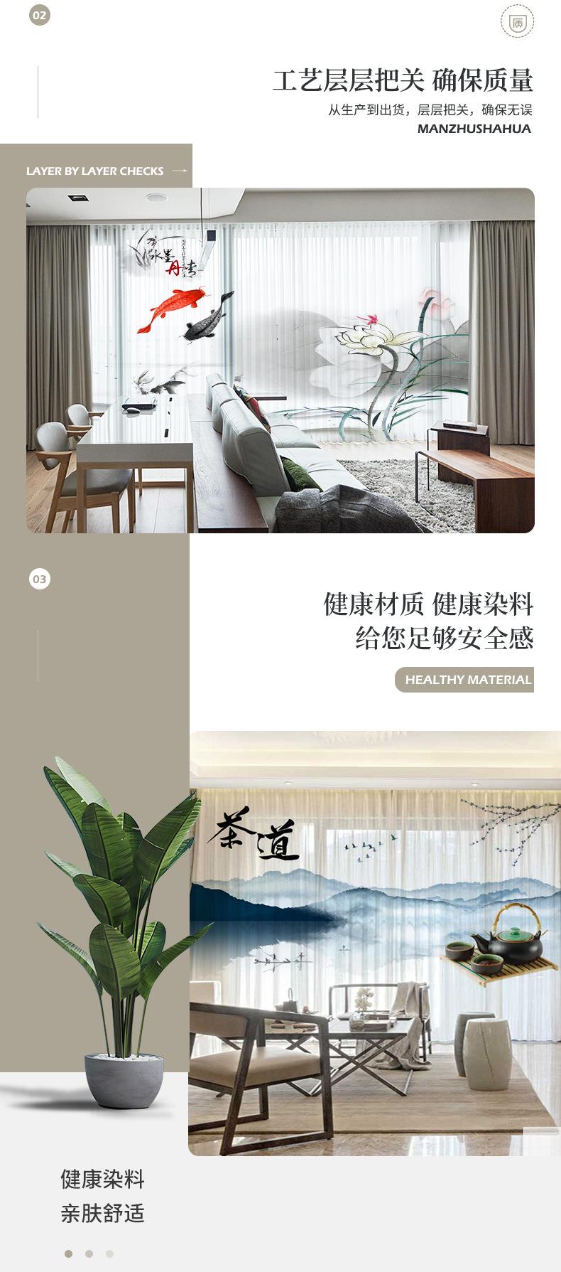Nueva mosquitera de impresión digital chifón chino producto terminado muestra de dibujo tinta estilo chino mosquitera