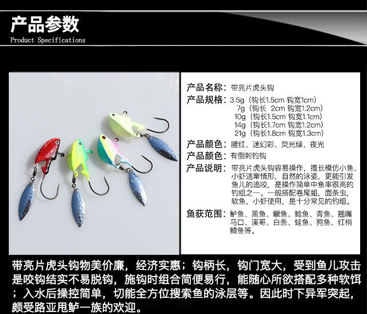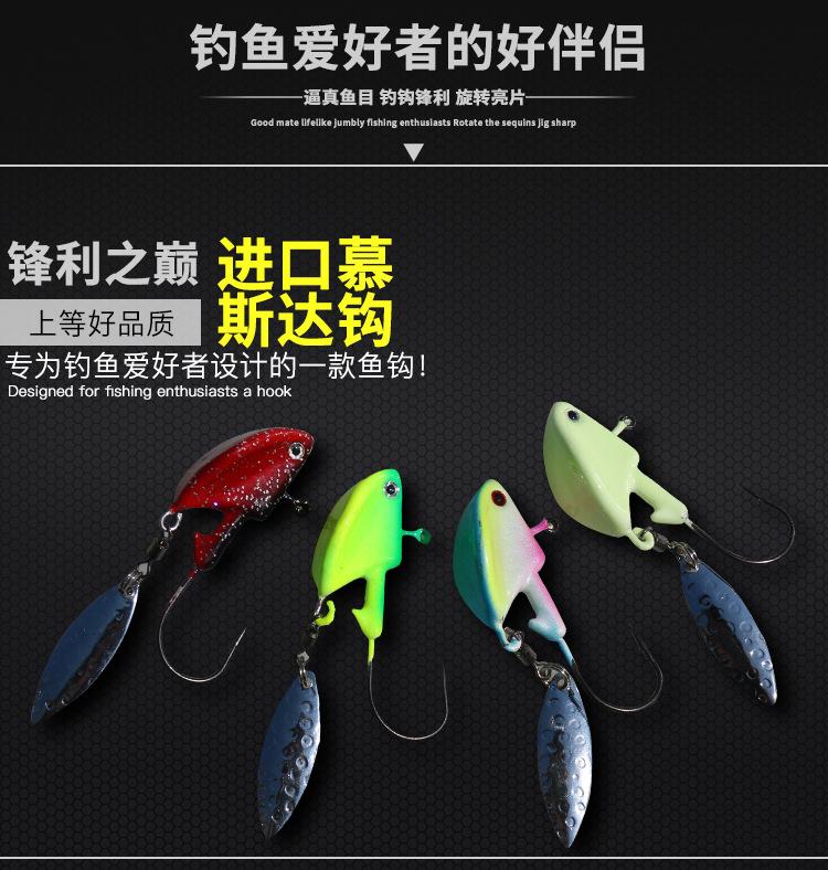 anzuelo con cabeza de pez anzuelo con cabeza de plomoCon lentejuelas giratorias en forma de sauceAnzuelo especial para cebo de vinilo blando