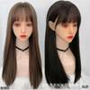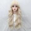 Pelucas Transfronterizas, Moda Europea y Americana para Mujer, Flequillo con Raya al Medio de Fibra Sintética, Cabello Largo Rizado Teñido, Venta al por Mayor de Cabello Largo Liso de Alta Venta, Fibra de Alta Temperatura