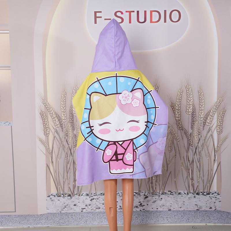Capa de Toalla de Baño para Niños Estampada para Bebé Poncho de Playa Usable de Secado Rápido Absorbente Grueso Bata Estilo con Capucha