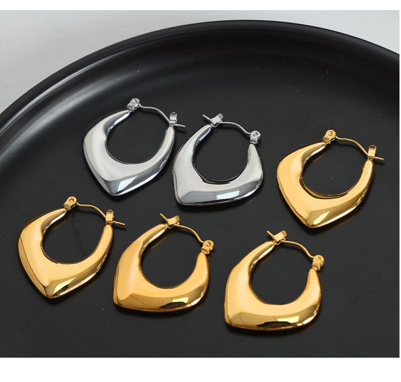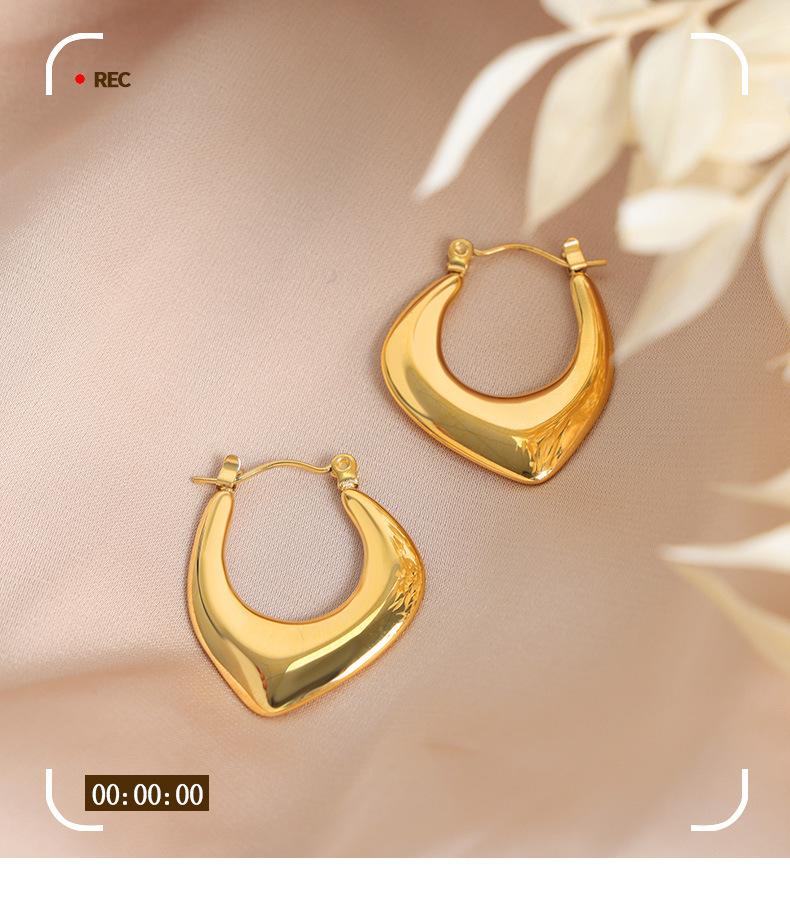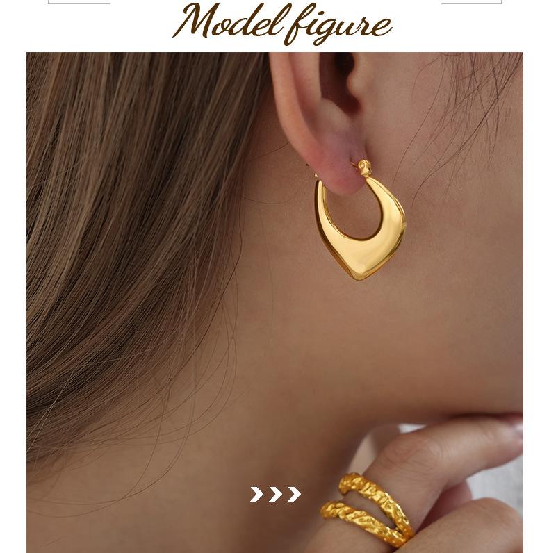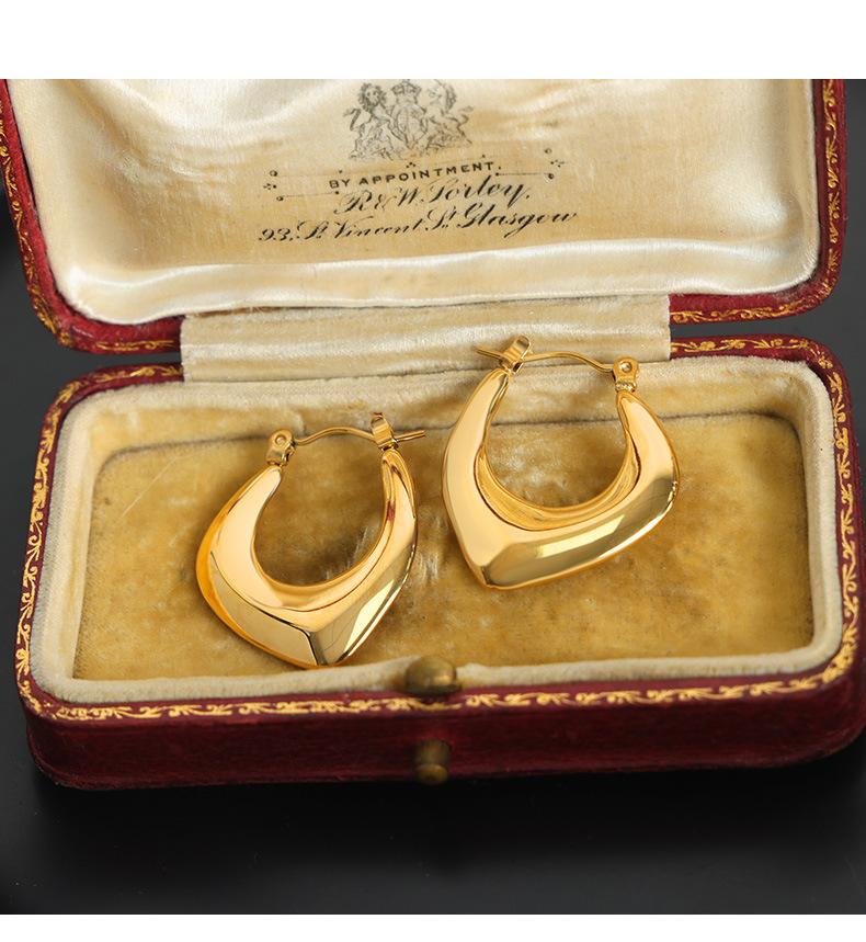Aretes Geométricos en Forma de U de Diseño de Lujo Ligero Europeo y Americano Acero de Titanio Oro de 18K No se Desvanecen Aretes Retro Únicos Estilo Nicho
