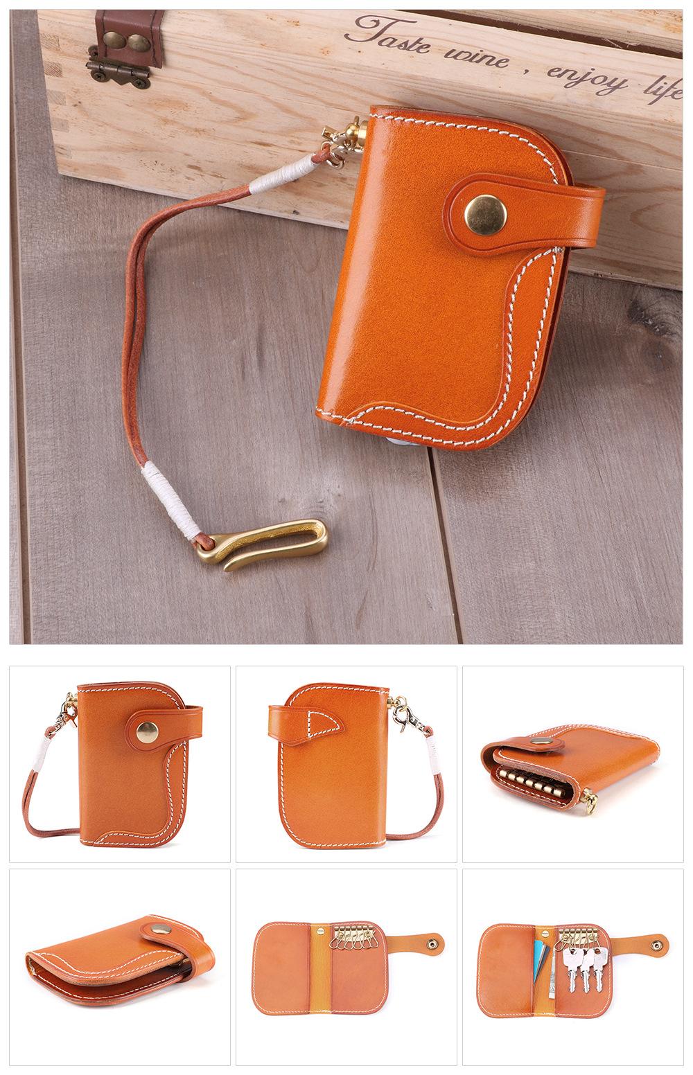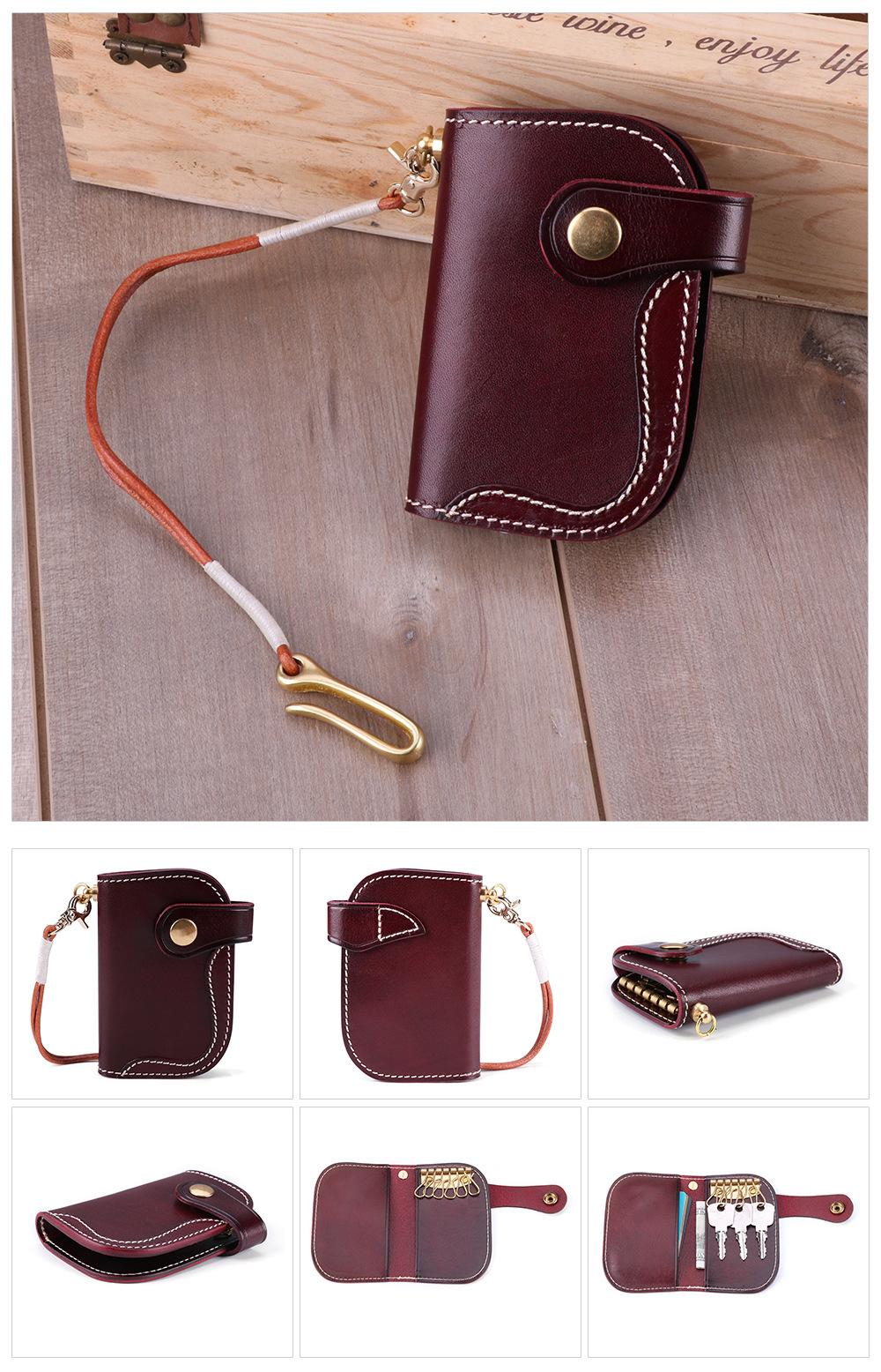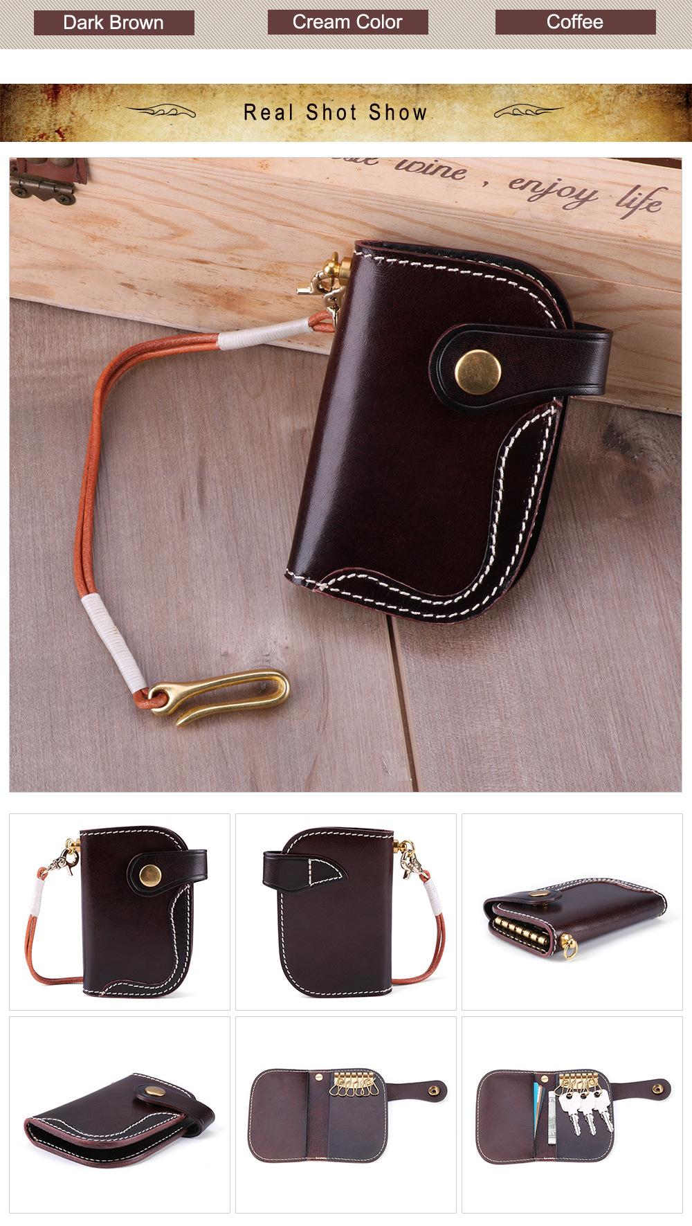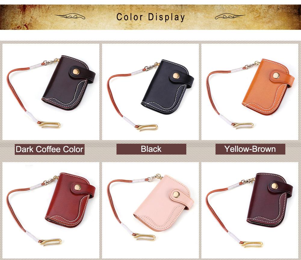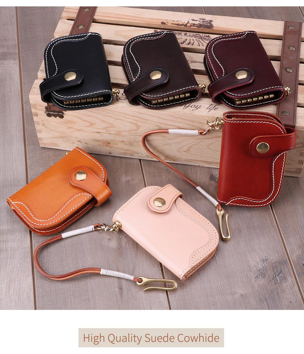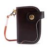 Bolso para llaves portátil de cuero genuino para colgar en la cintura, multifuncional, para guardar tarjetas bancarias y cambios, estilo vintage de cuero curtido vegetal.
