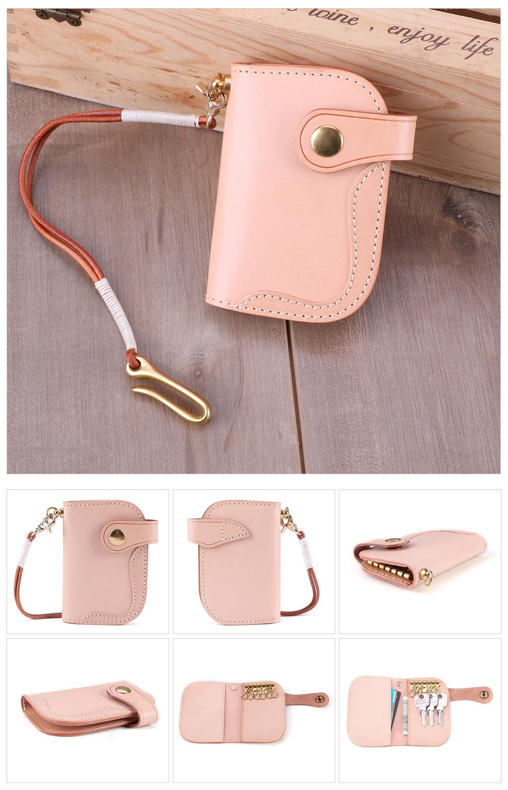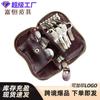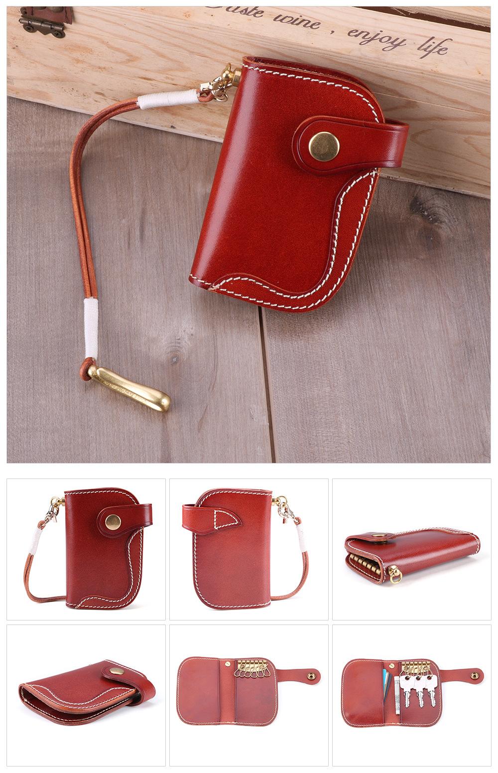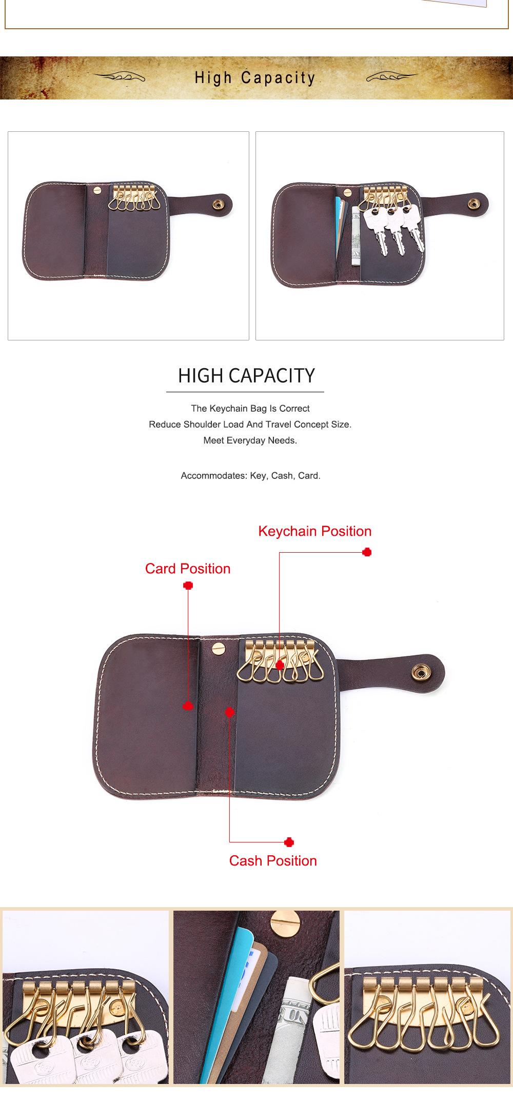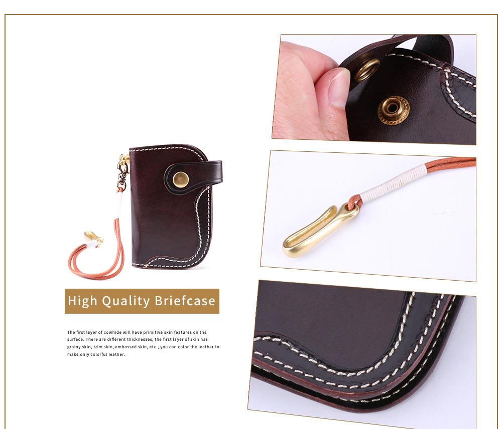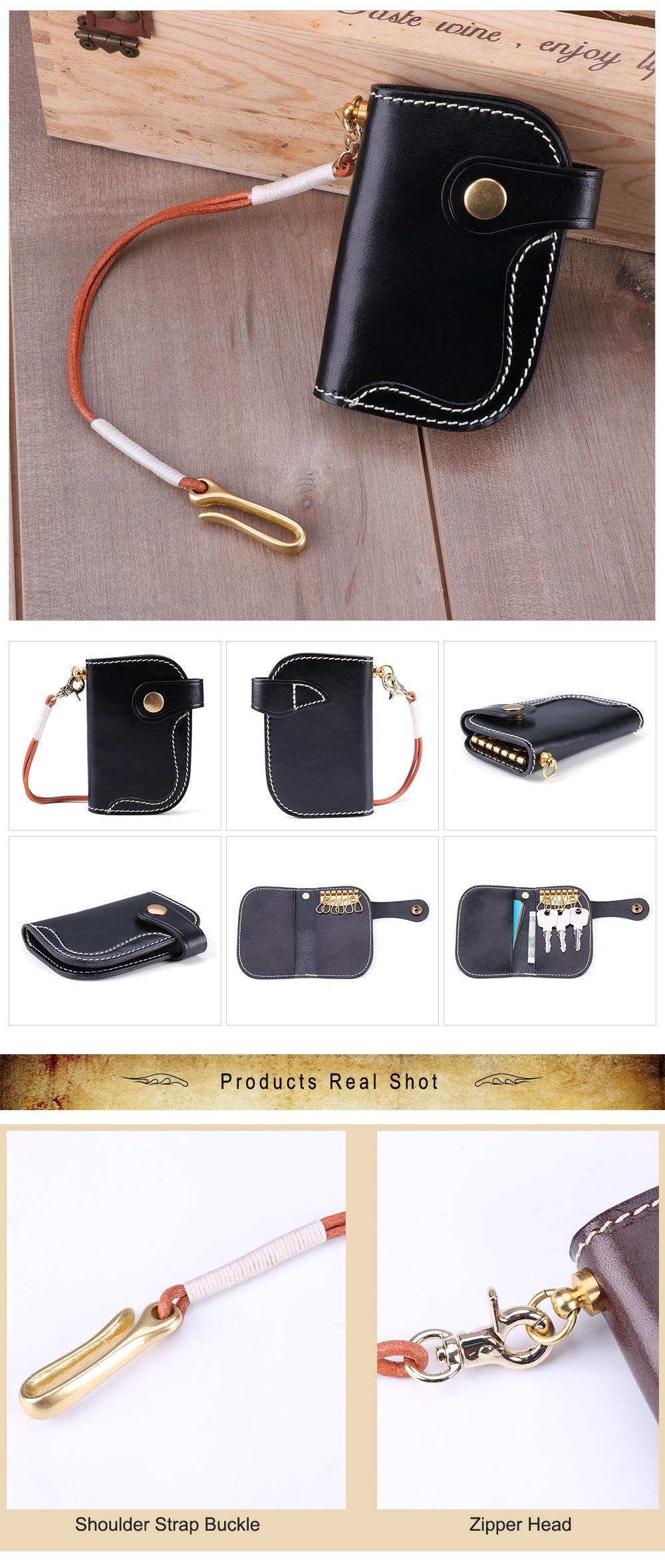Bolso para llaves portátil de cuero genuino para colgar en la cintura, multifuncional, para guardar tarjetas bancarias y cambios, estilo vintage de cuero curtido vegetal.