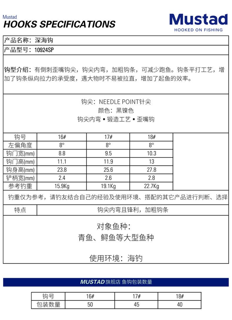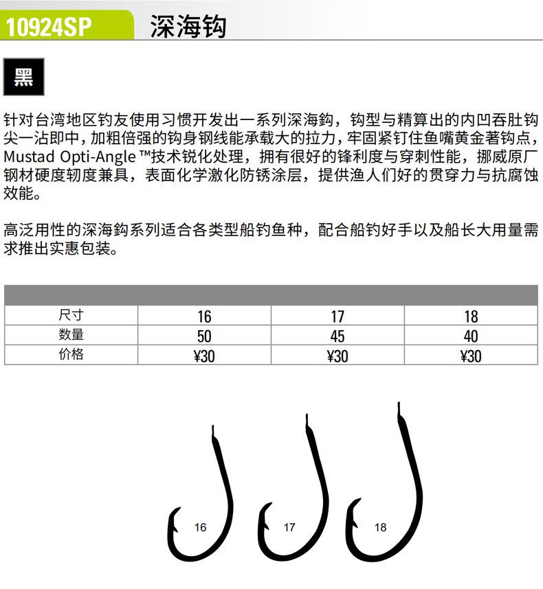 Mustad Mustad 10924 anzuelo para pesca en aguas profundas, negro/dorado, anzuelo grueso de alta resistencia, anzuelo de descarga, anzuelo de pesca de fondo