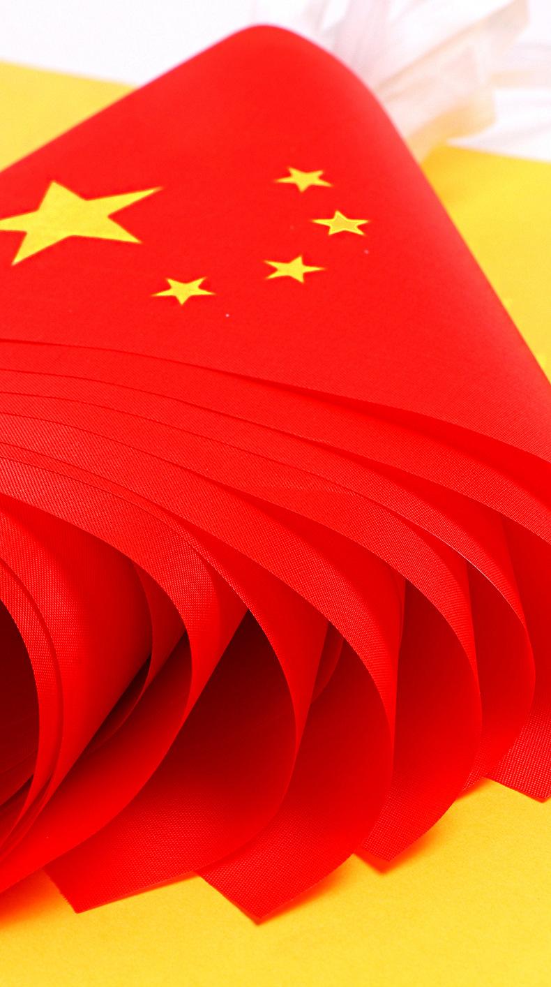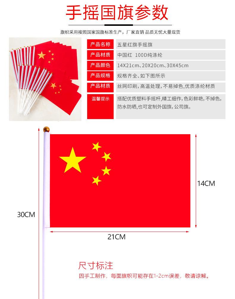Bandera roja de cinco estrellas al por mayor de fábrica, bandera de mano del Día Nacional, bandera impermeable y protectora solar, bandera china con asta de bandera
