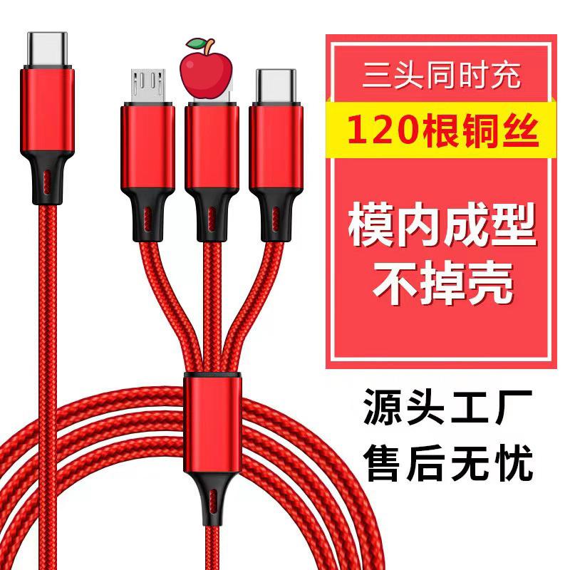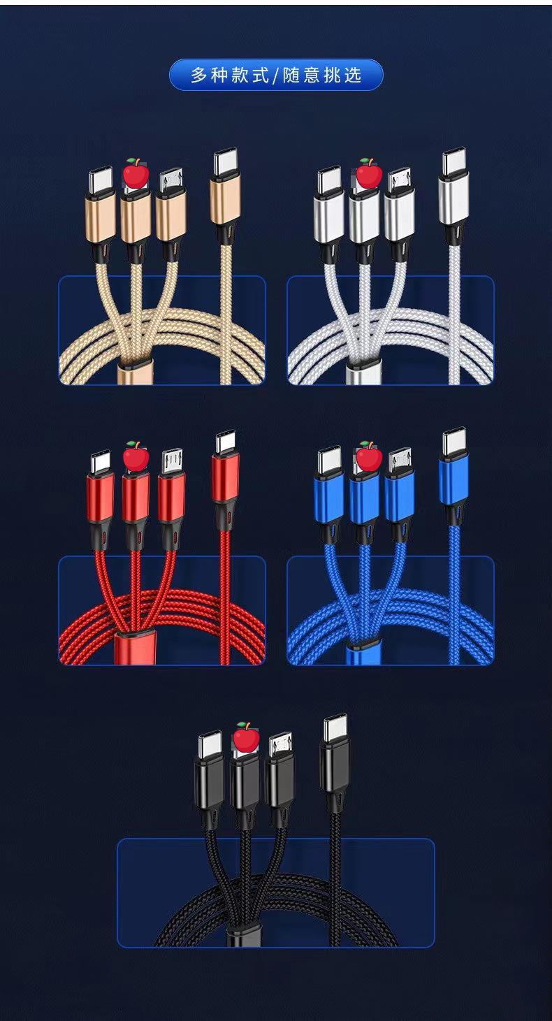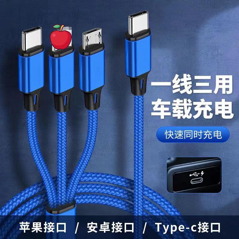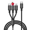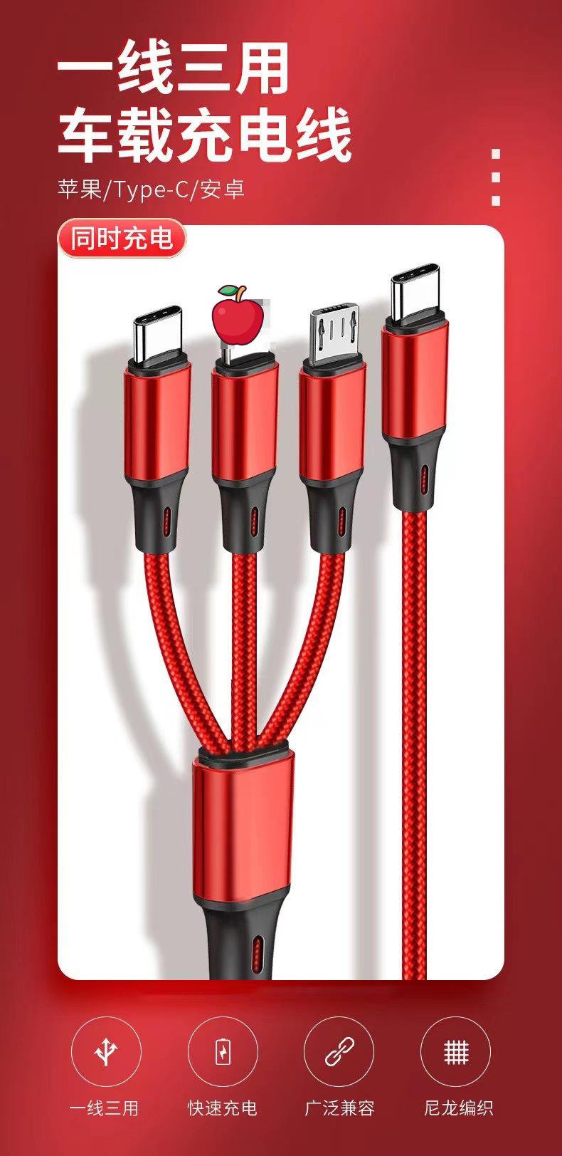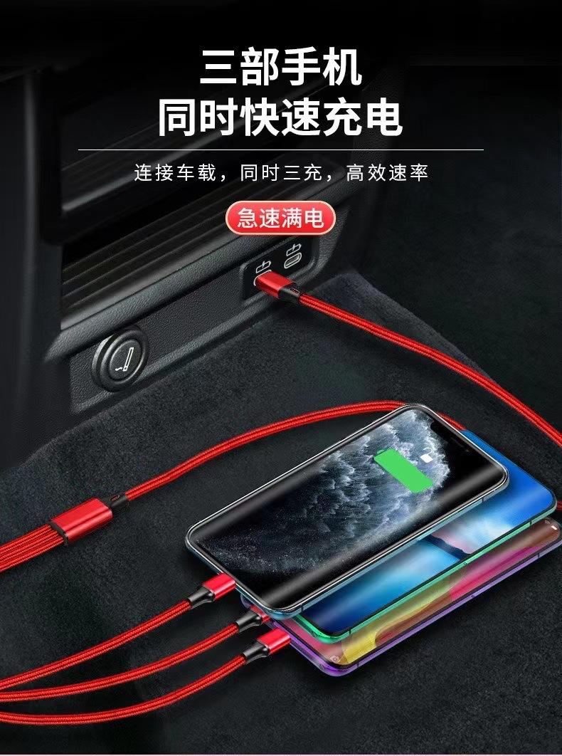 Características: Interfaces de una a tres, equipadas con las principales interfaces de carga actuales, pueden cargar rápidamente tres dispositivos al mismo tiempo, cuerpo de cable de nailon, resistente al desgaste y a la suciedad, sin nudos, envío neutral.