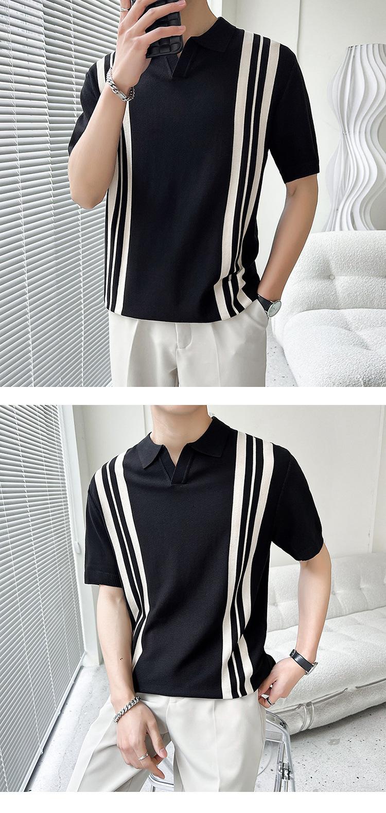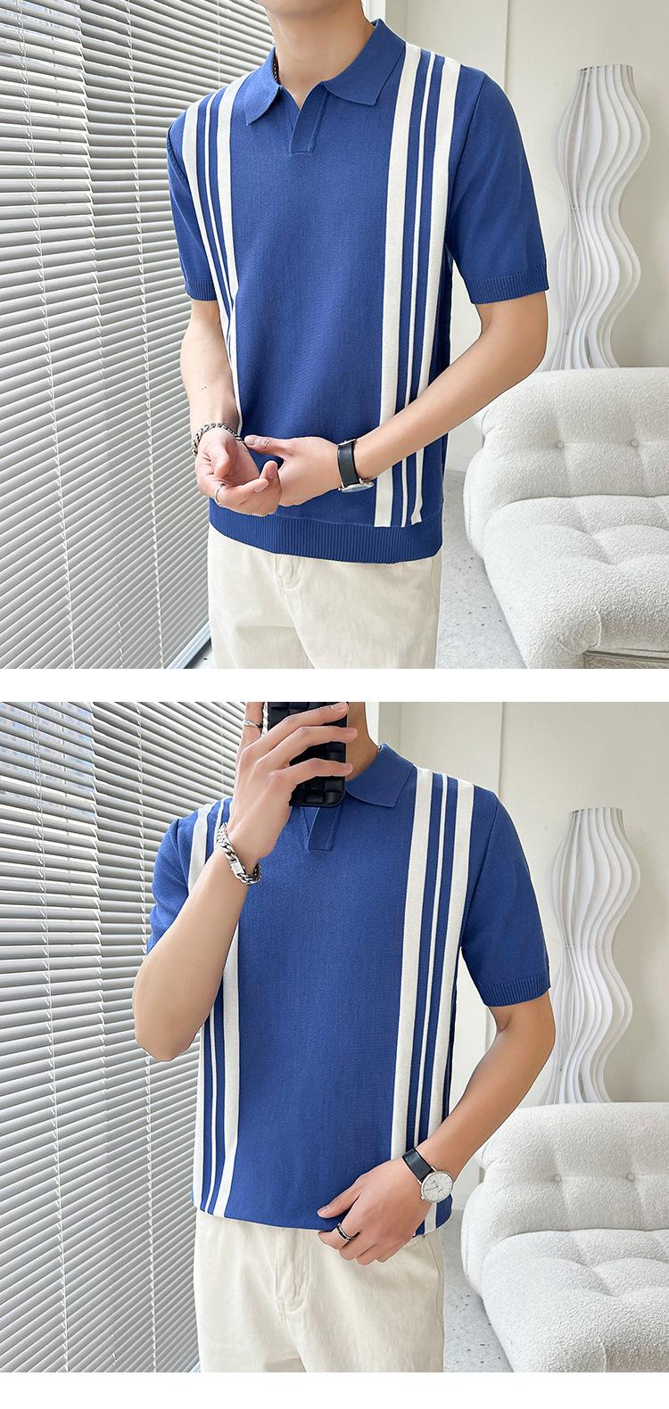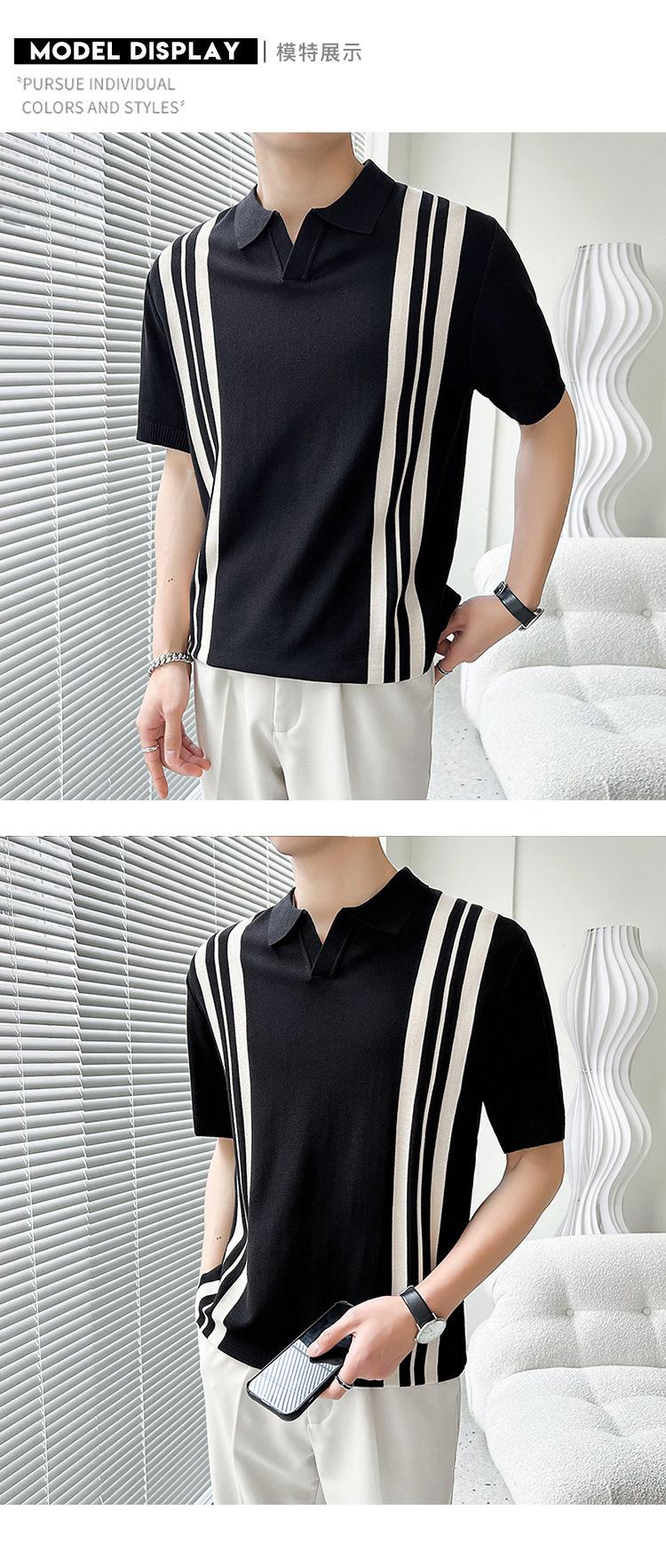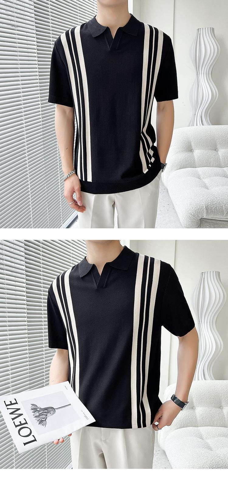 Polo de verano 2023 para hombre, informal, con solapa, corte entallado, de seda helada, de punto, de media manga, a rayas, de color en contraste, fino, de manga corta.