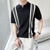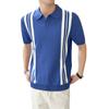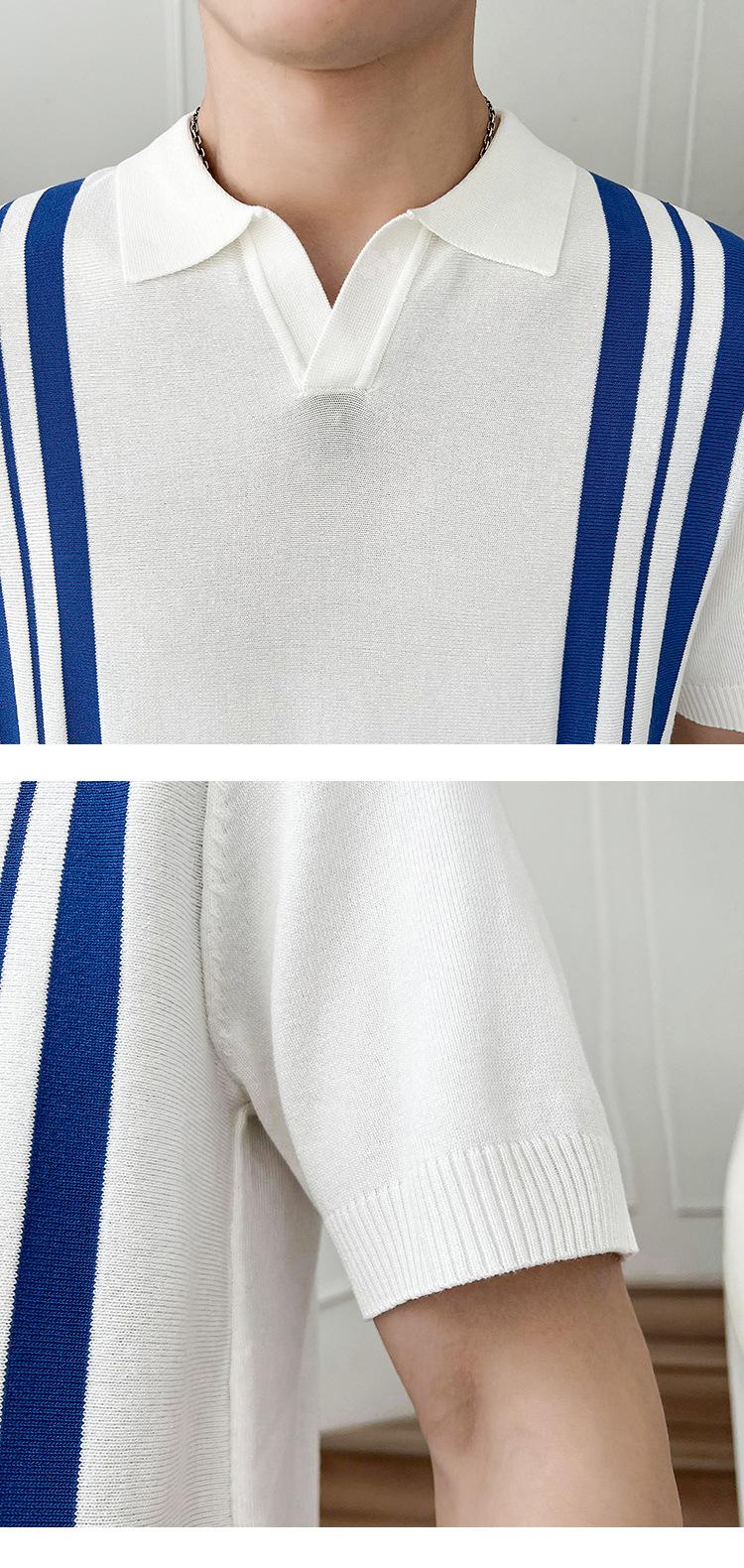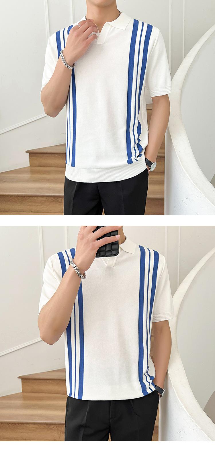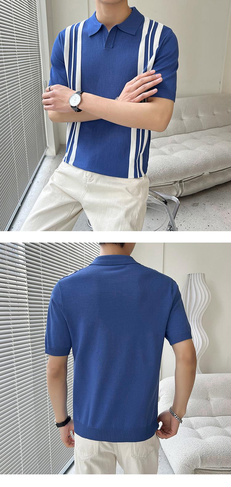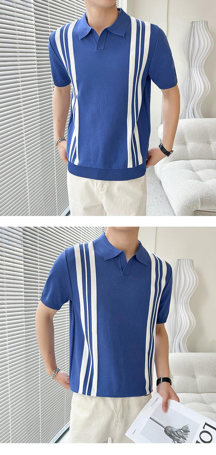 Polo de verano 2023 para hombre, informal, con solapa, corte entallado, de seda helada, de punto, de media manga, a rayas, de color en contraste, fino, de manga corta.