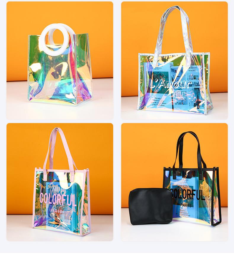 Bolsa de compras de ropa personalizada, bolsa de regalo, bolsa de PVC transparente, bolsa de plástico, bolsa láser, fabricante