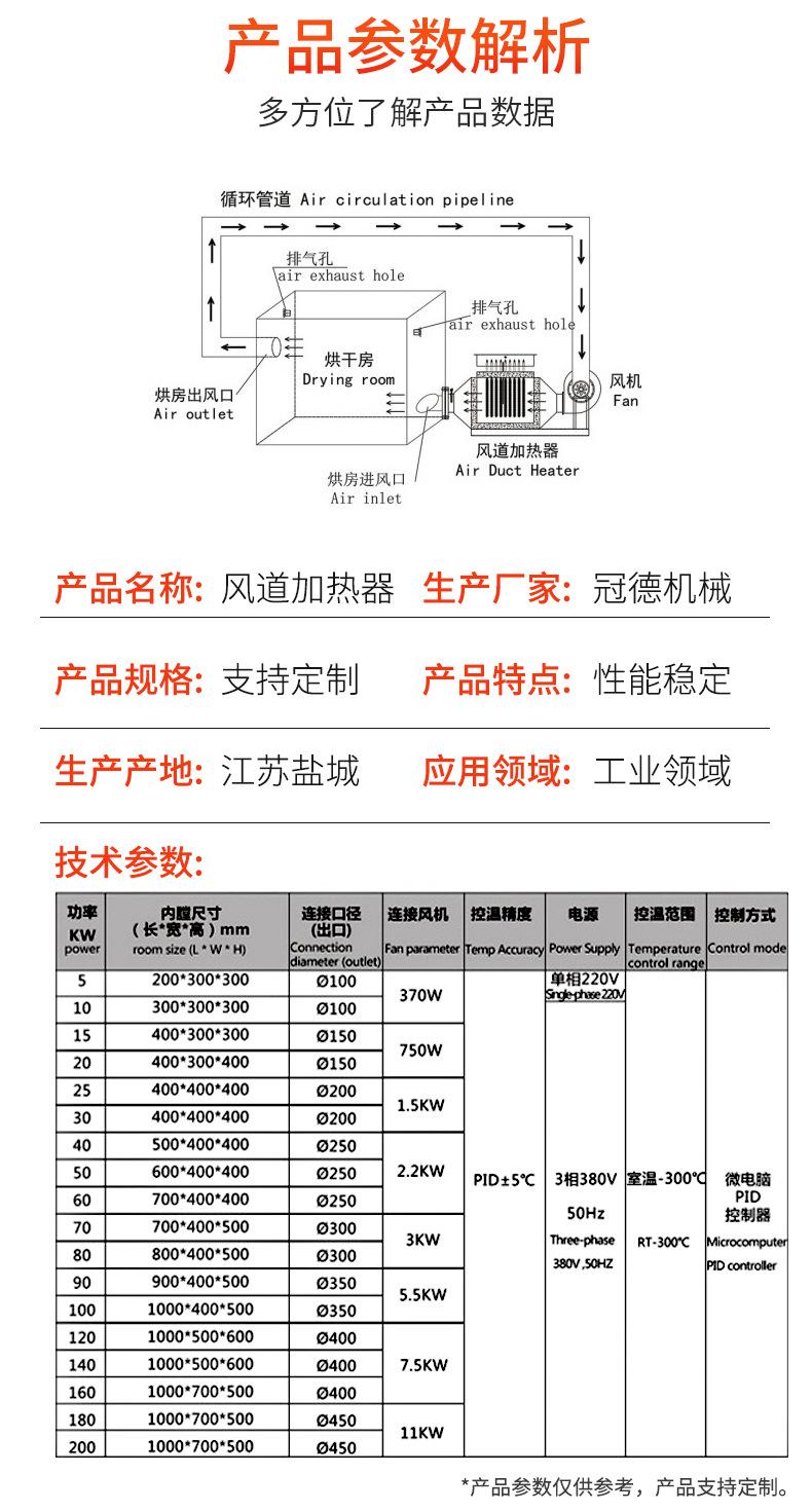 Industrial drying room, paint room heating, food drying, flue dust removal