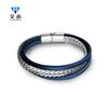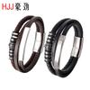 Pulsera de cuero genuino con cadena de perlas para hombre, de acero de titanio y estilo europeo y americano, con hebilla magnética personalizada antigua de estilo étnico y tendencia creativa