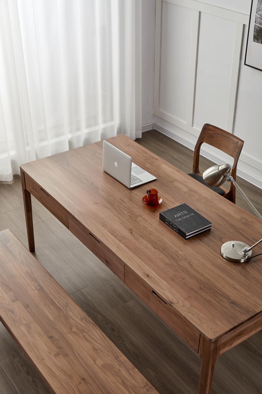 Directo de fábrica Nórdico madera maciza nogal negro mesa de comedor de madera moderno minimalista japonés tronco madera de cerezo escritorio con cajón