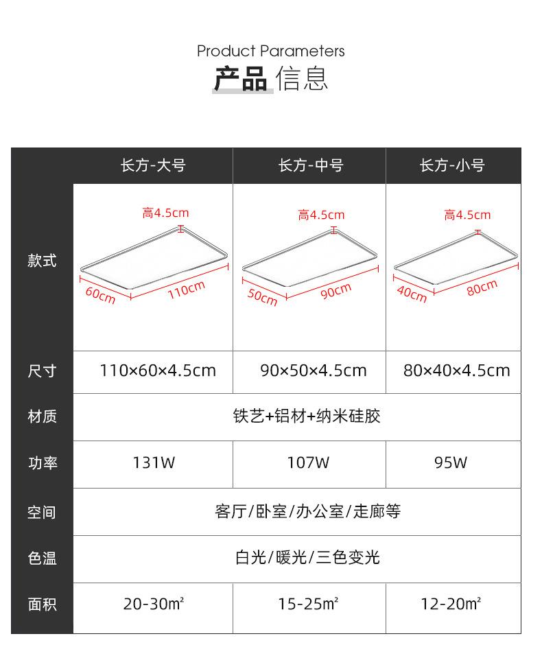 Lámpara de sala de estar, lámpara de techo led de ambiente moderno y sencillo, lámpara principal rectangular ultrafina, lámpara de dormitorio nórdica, lámpara Zhongshan