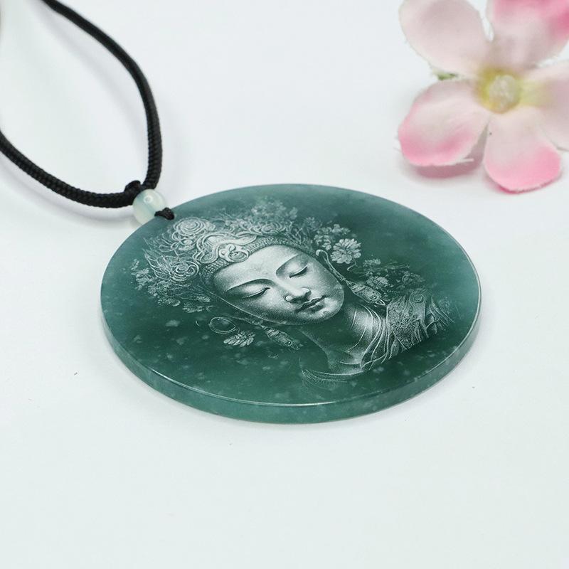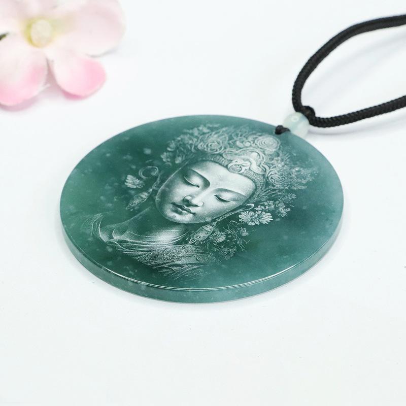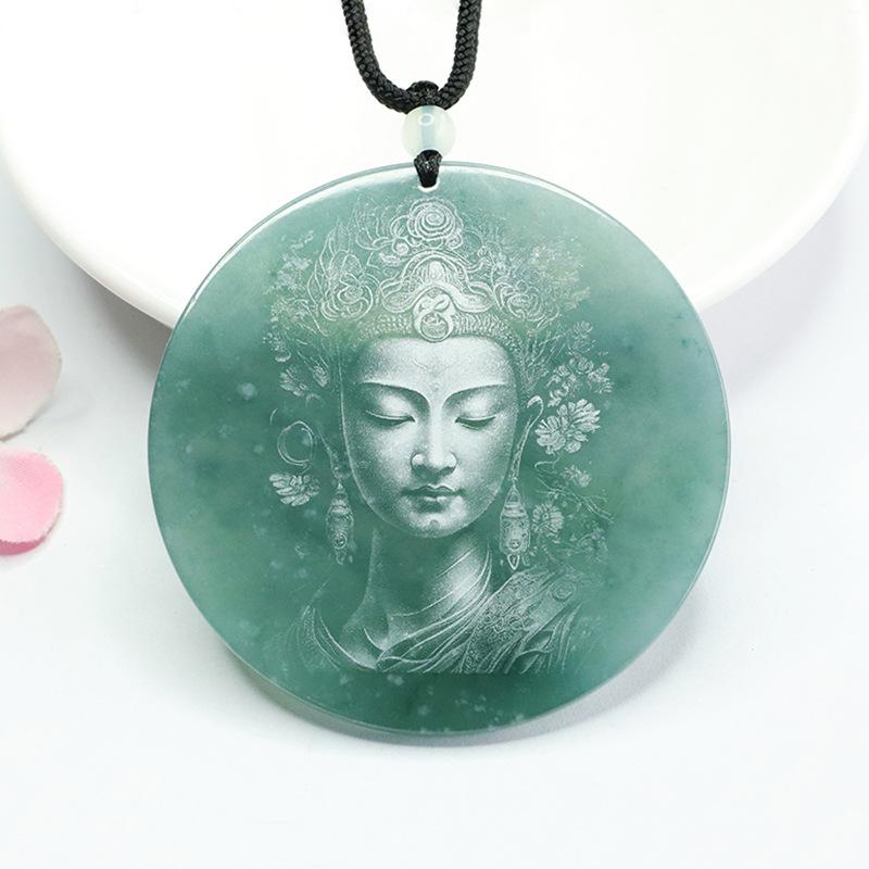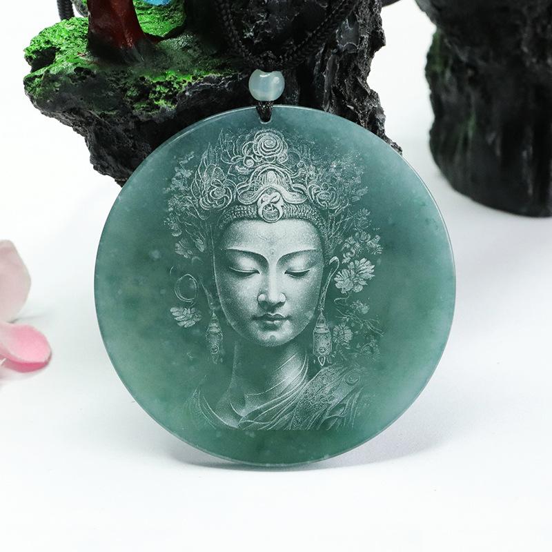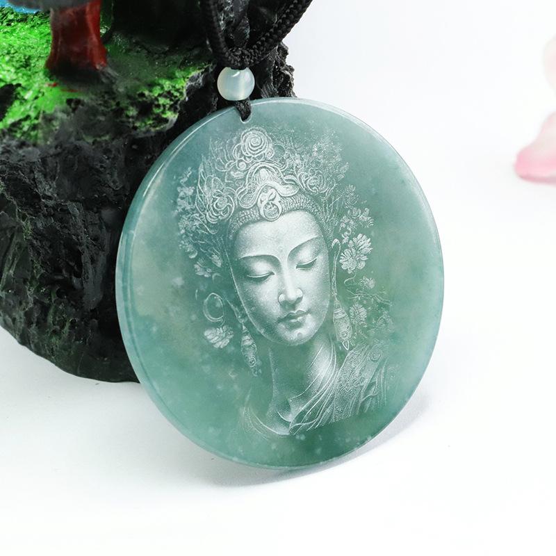 Colgante de Jade Natural Guan Yu Agua Azul Talla de Guanyin Bodhisattva Jade Mayorista Dropshipping S3122303