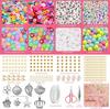 Alrededor de 5320 cuentas de arcilla polimérica, 204 cuentas de letras, 180 piezas de flor de ciruelo, 25 cuentas de cara, 25 cuentas de amor, 25 cuentas de estrella de luna, 25 cuentas agrupadas, 20 cuentas de perlas, 5 colgantes grandes de concha, 8 colgantes de metal, 30 estrellas de cinco puntas y 30 cuentas de diamante, 80 cuentas espaciadoras, etc. 1 par de tijeras, 1 par de pinzas, 1 alambre para enrollar