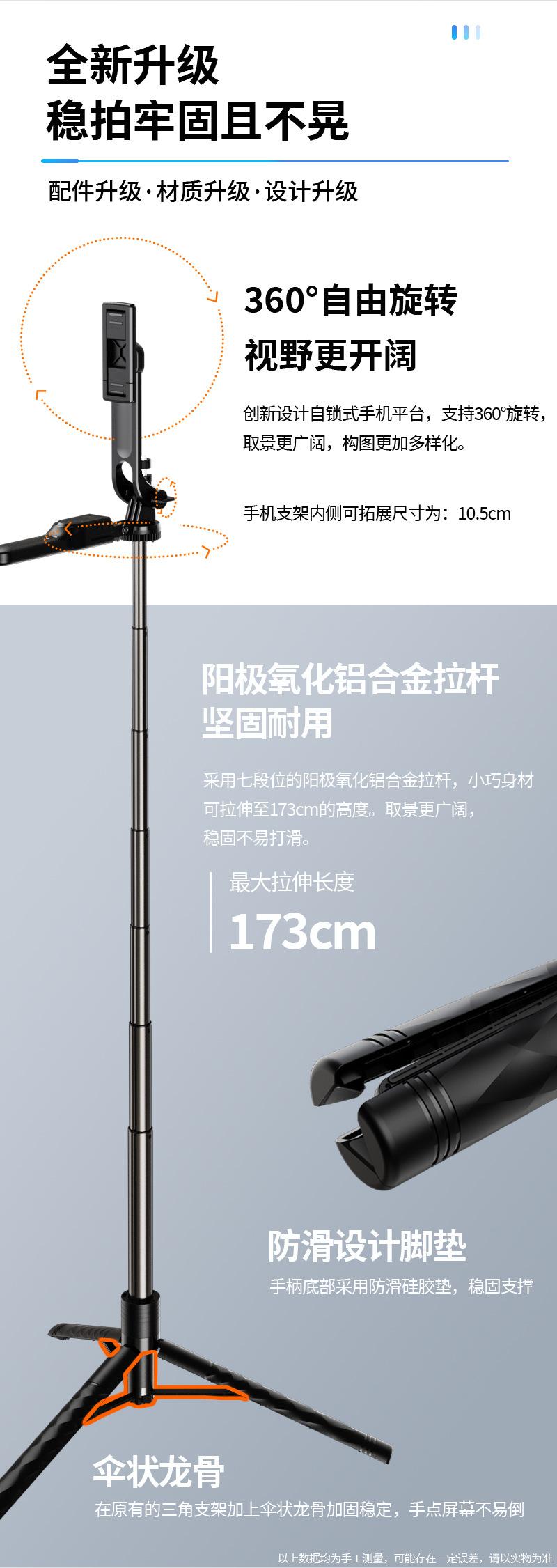 1.7m aluminum alloy three-axis anti-shake selfie stick