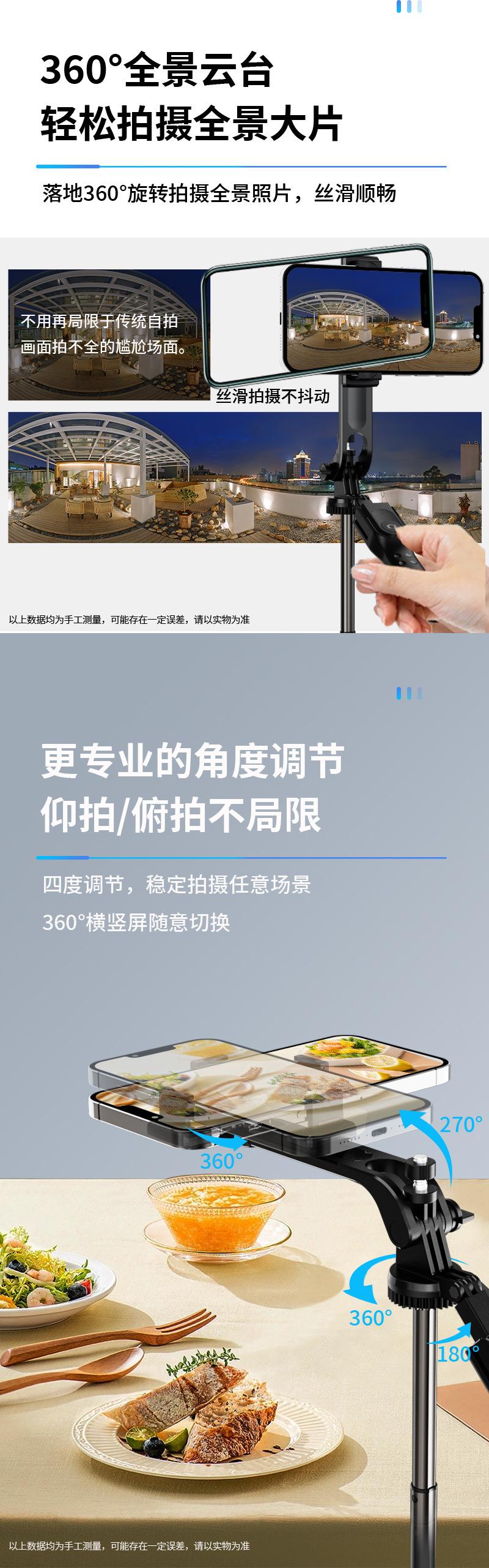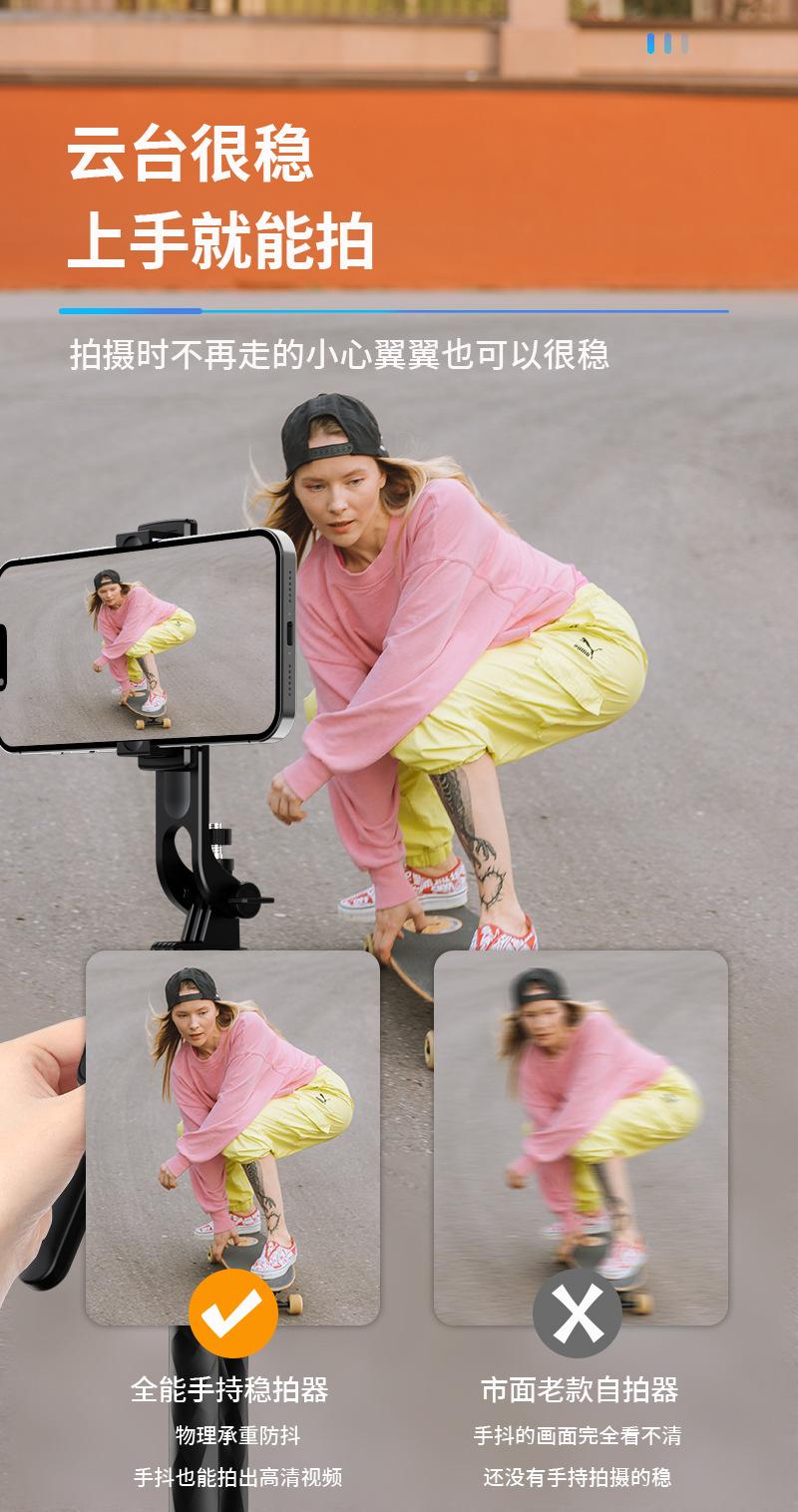 Double camera position 1.7m aluminum alloy three-axis anti-shake selfie stick