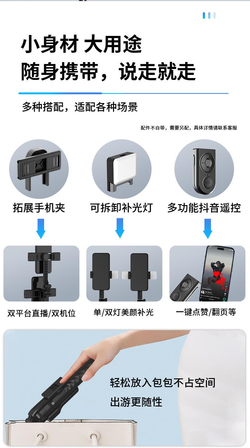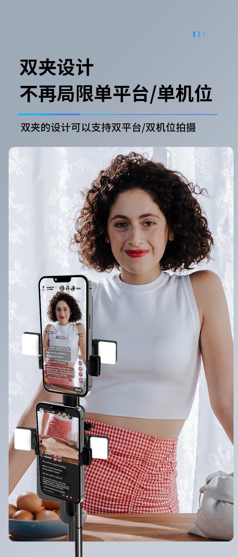 1.7m aluminum alloy three-axis anti-shake selfie stick, Double fill light 1.7m aluminum alloy three-axis anti-...