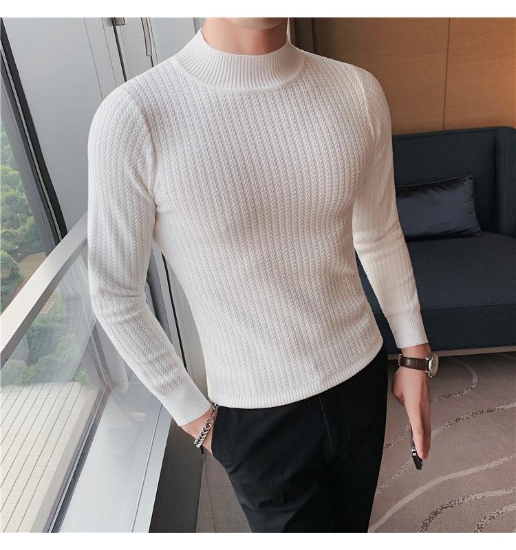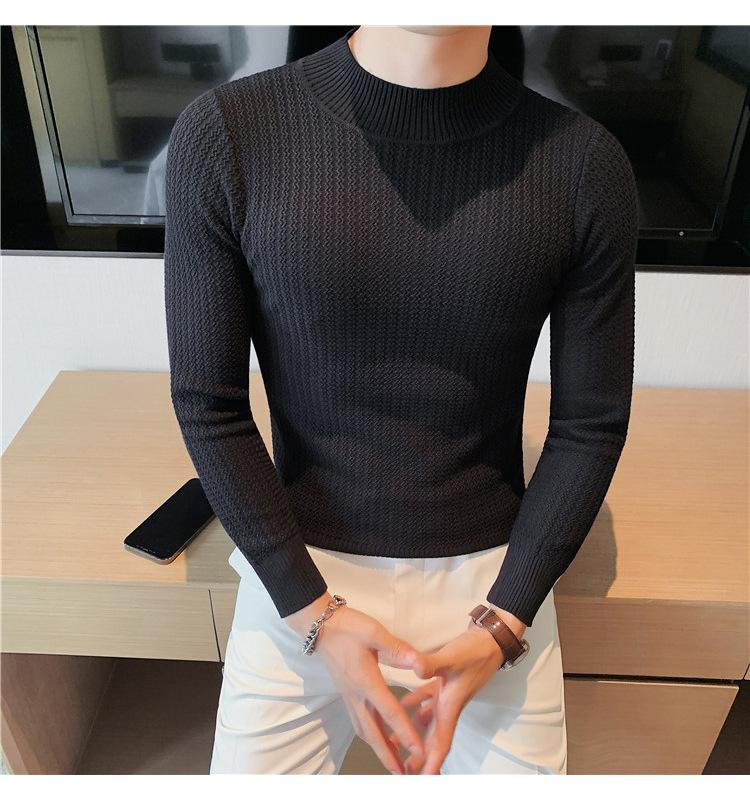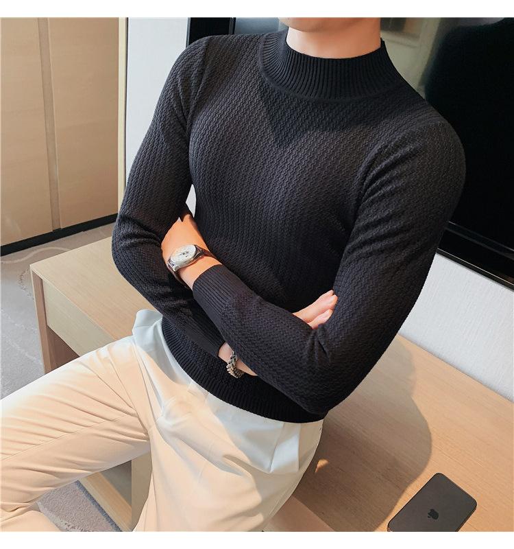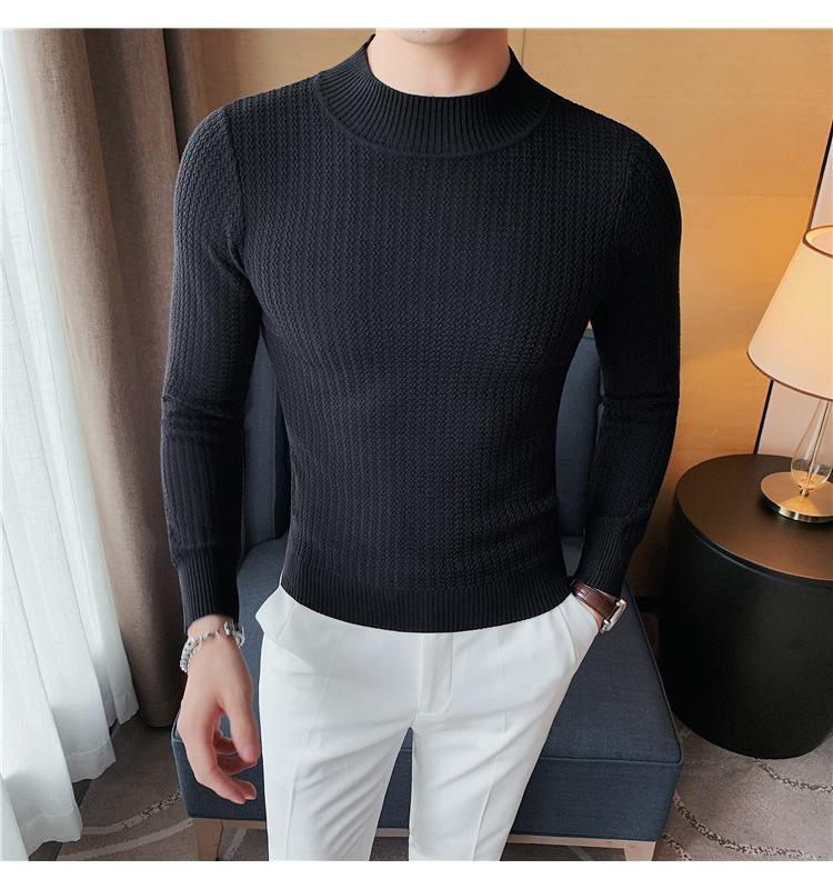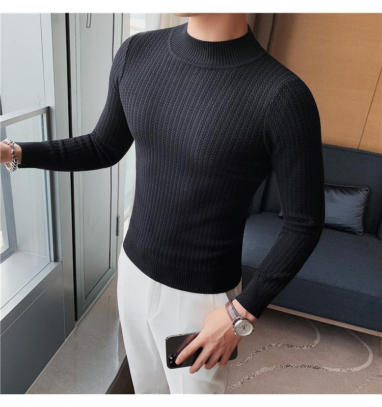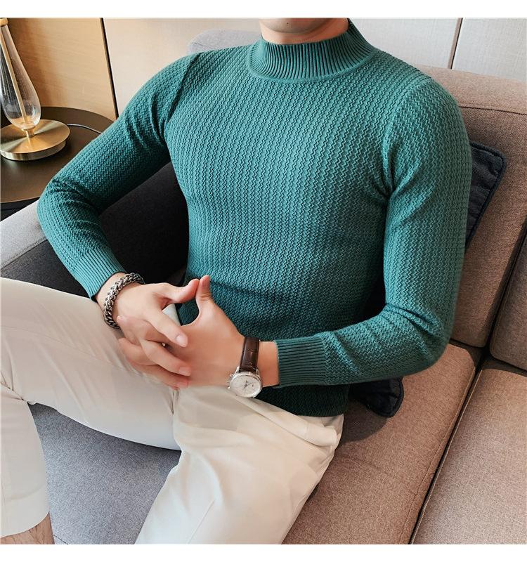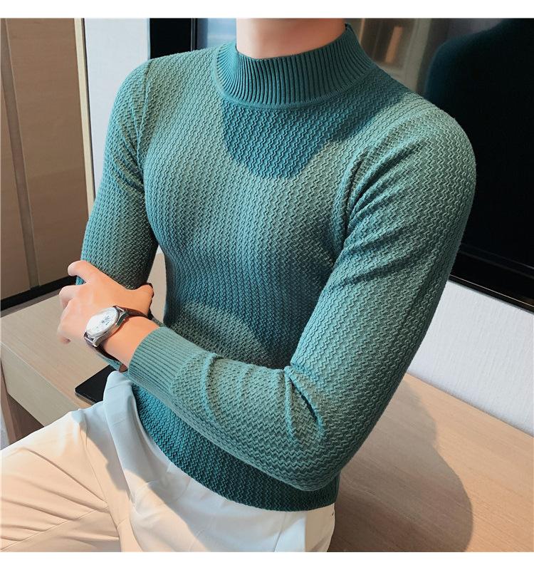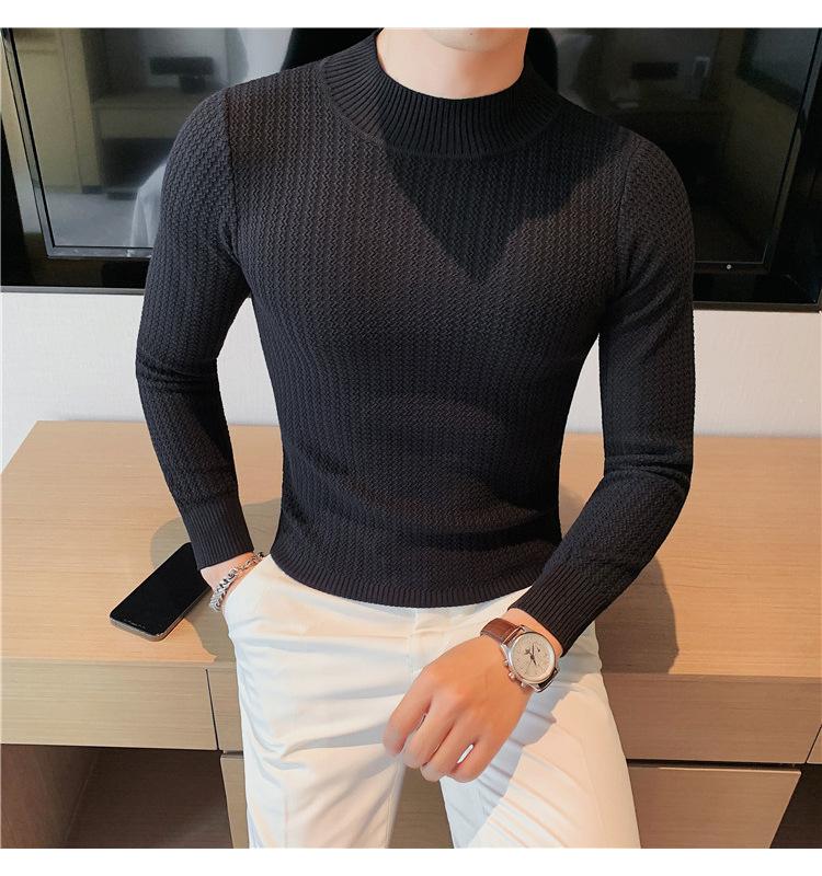 Suéter de cuello alto para hombre, otoño e invierno, ajustado, moderno, de manga larga, de punto, con diseño de camisa básica, suéter de color sólido que combina con todo.