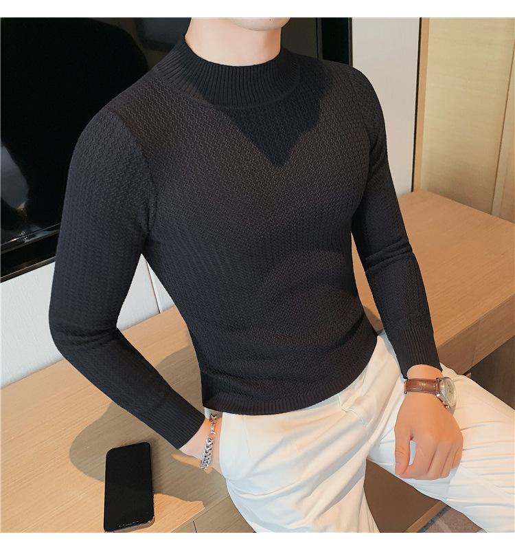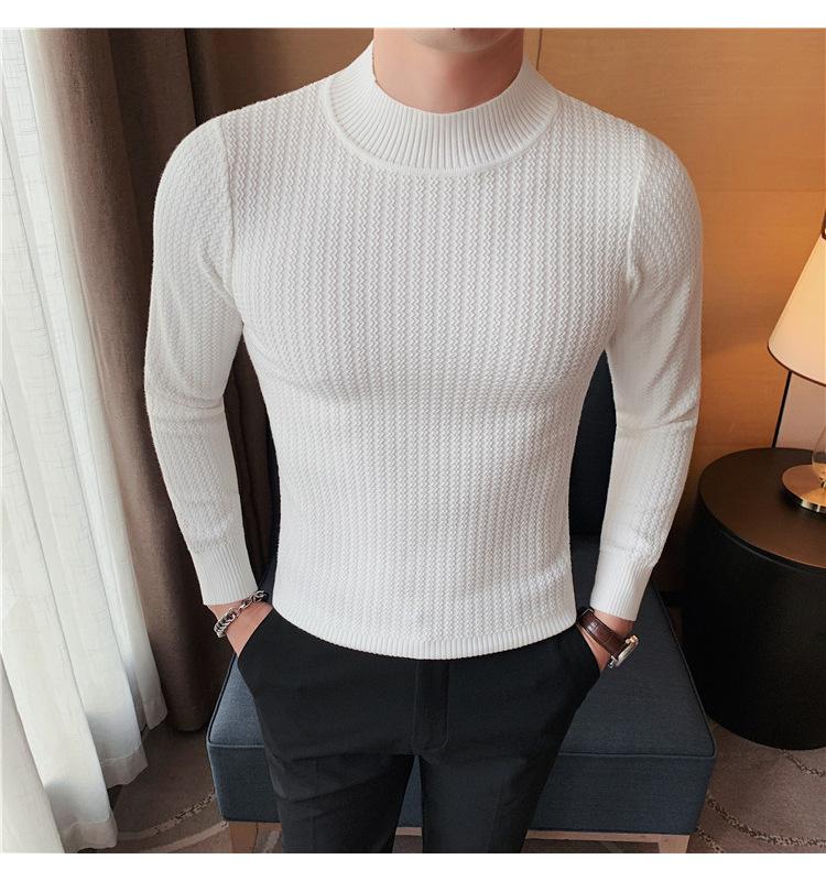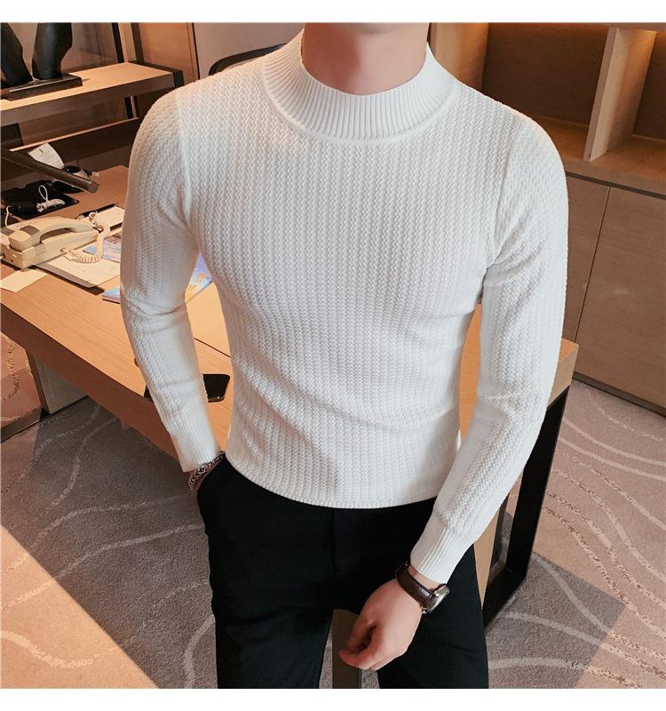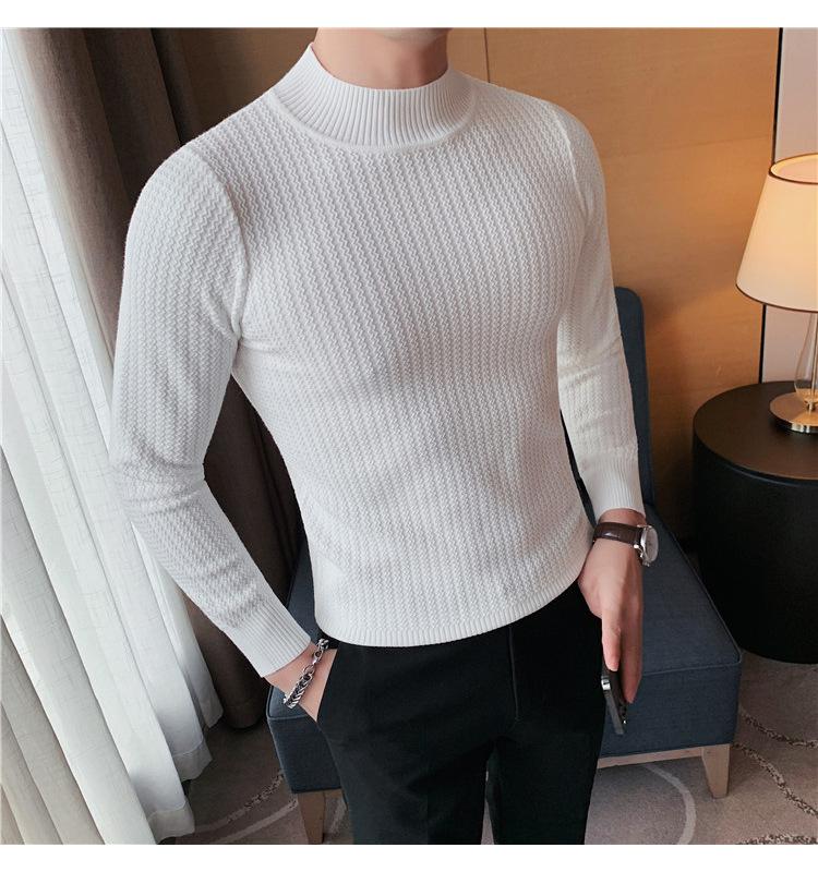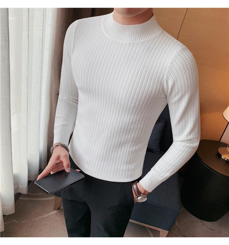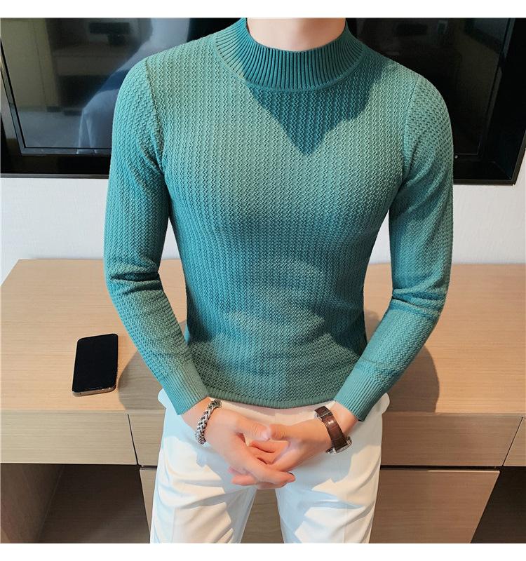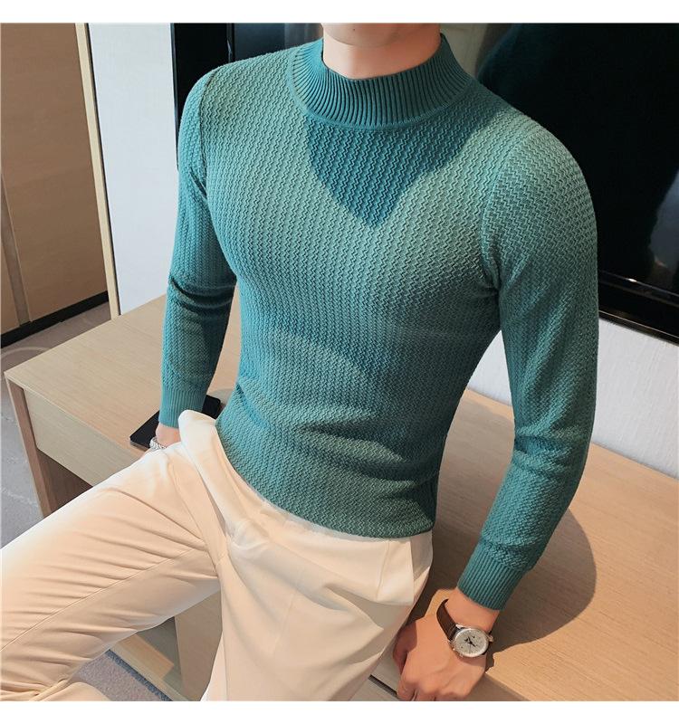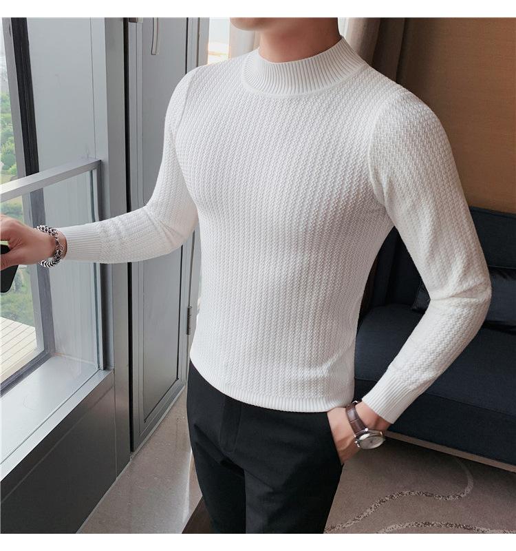 Suéter de cuello alto para hombre, otoño e invierno, ajustado, moderno, de manga larga, de punto, con diseño de camisa básica, suéter de color sólido que combina con todo.
